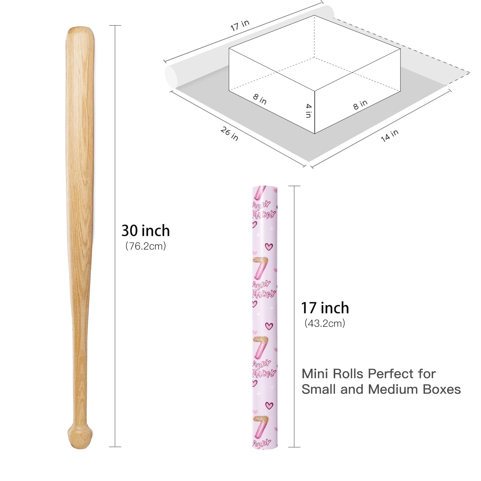 Enhance your gift-giving with this birthday wrapping paper roll. Made from strong and tear-resistant coated material, this wrapping paper keeps gifts secure and well-presented. This wrapping paper features adorable pink number 7 balloons, hearts and "HAPPY BIRTHDAY" text that girls will love. Each mini roll measures 17 inches wide by 16.4 feet long, providing ample paper for wrapping multiple gifts. With its bright colors and engaging patterns, this wrapping paper is ideal for girls' birthday celebrations. Make every gift memorable with this colorful wrapping paper that's perfect for birthday parties and special occasions.