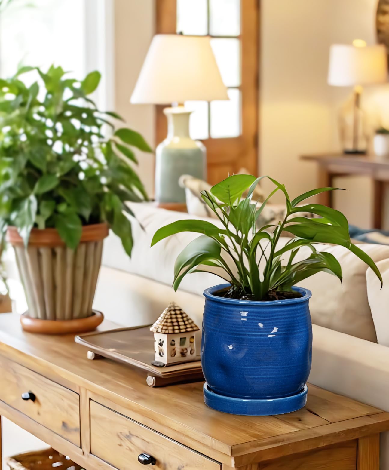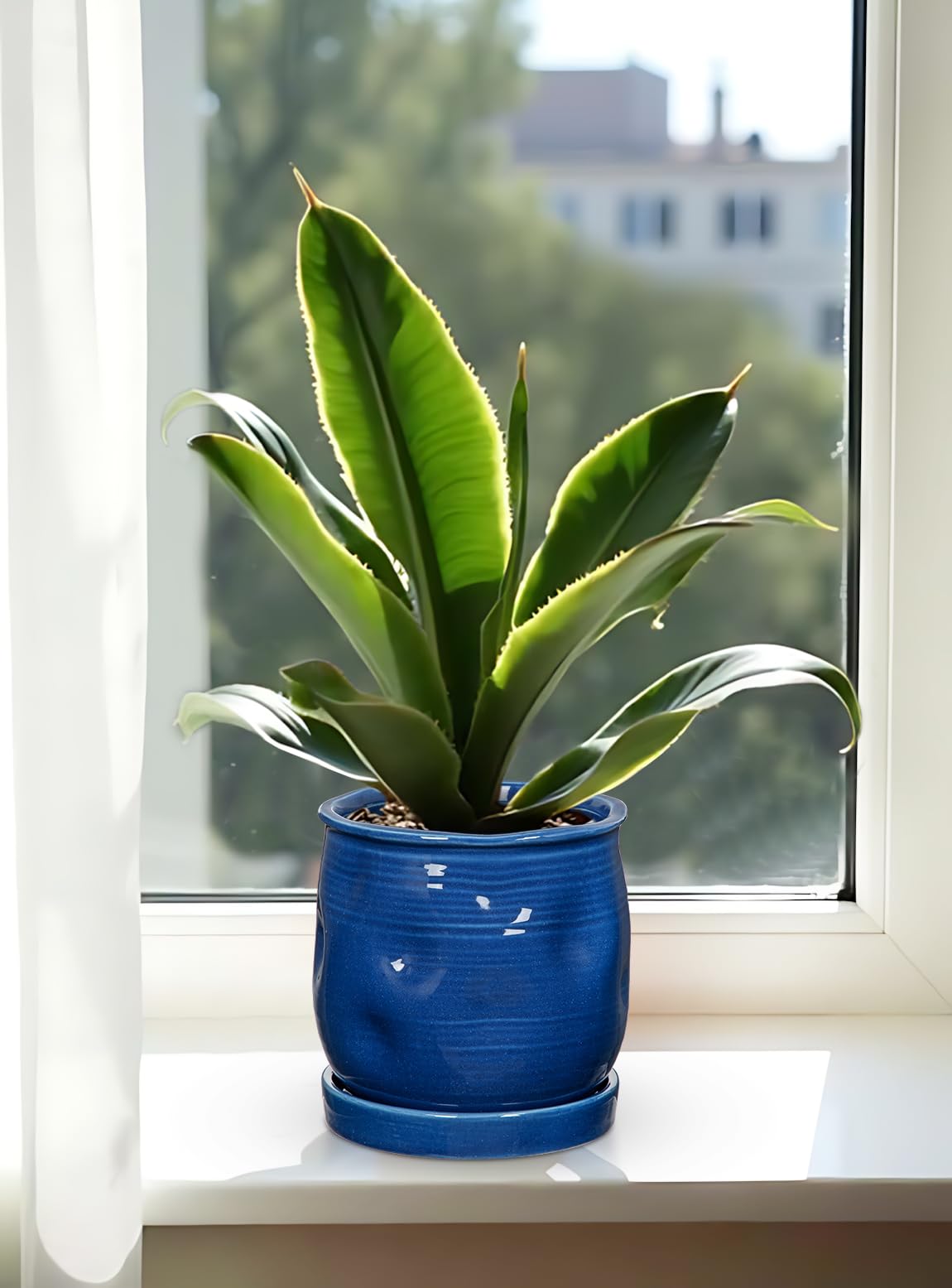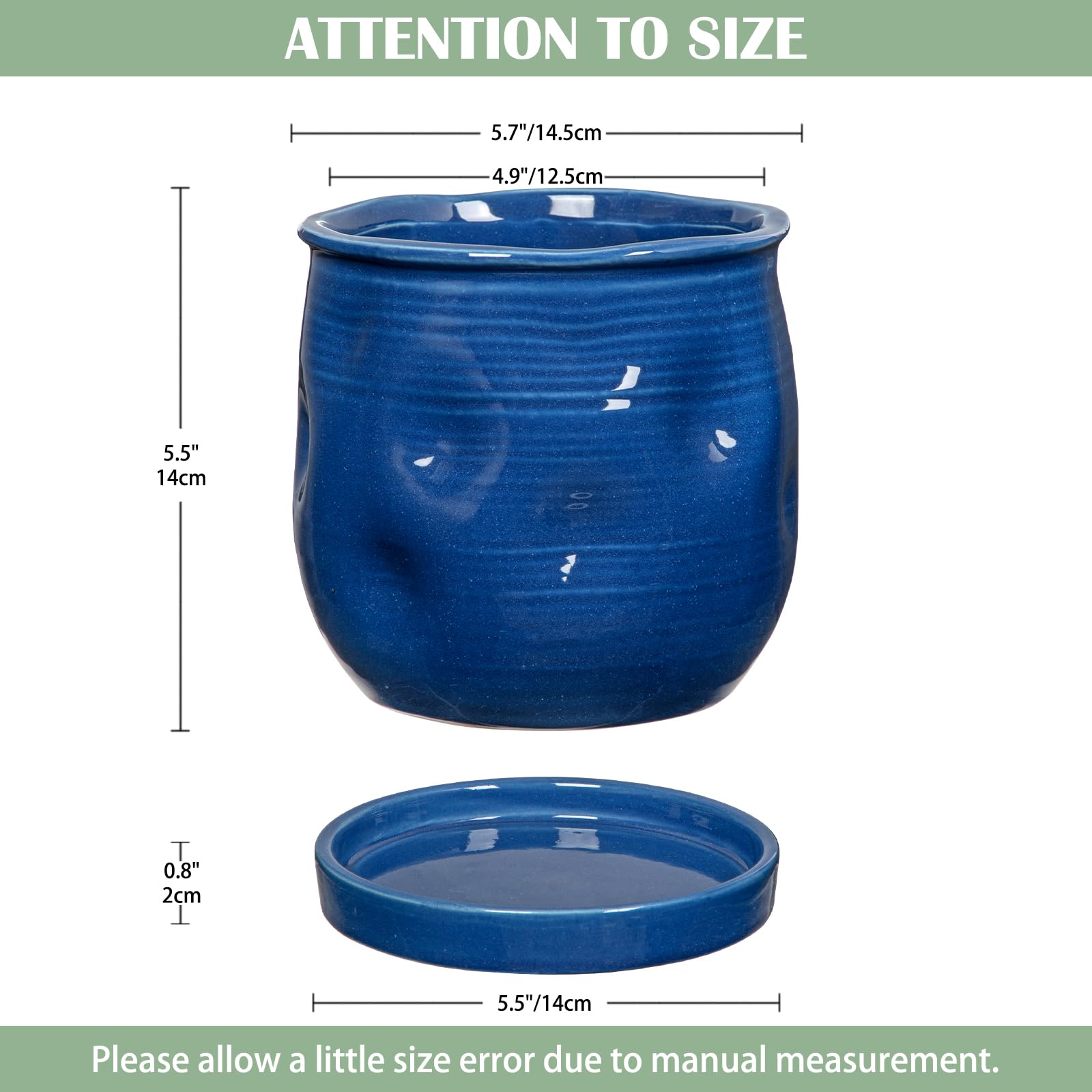 Good Size - The size of the blue pots for plants with drainage is 5.7"x 5.5"(D&H) with 4.9" opening(tray dia.: 5.5"), which are perfect to grow most small & medium sized plants, such as succulents, snake plants, orchid, herbs, cactus, aloe, devil's ivy, african violet,lavender, tulips,etc. Besides, you can put your seedling pots in this plant pot without any worries, this 5.7 inch pot would be your plant's best friend(you will get a satisfying resolution if any damage of this planting pot)