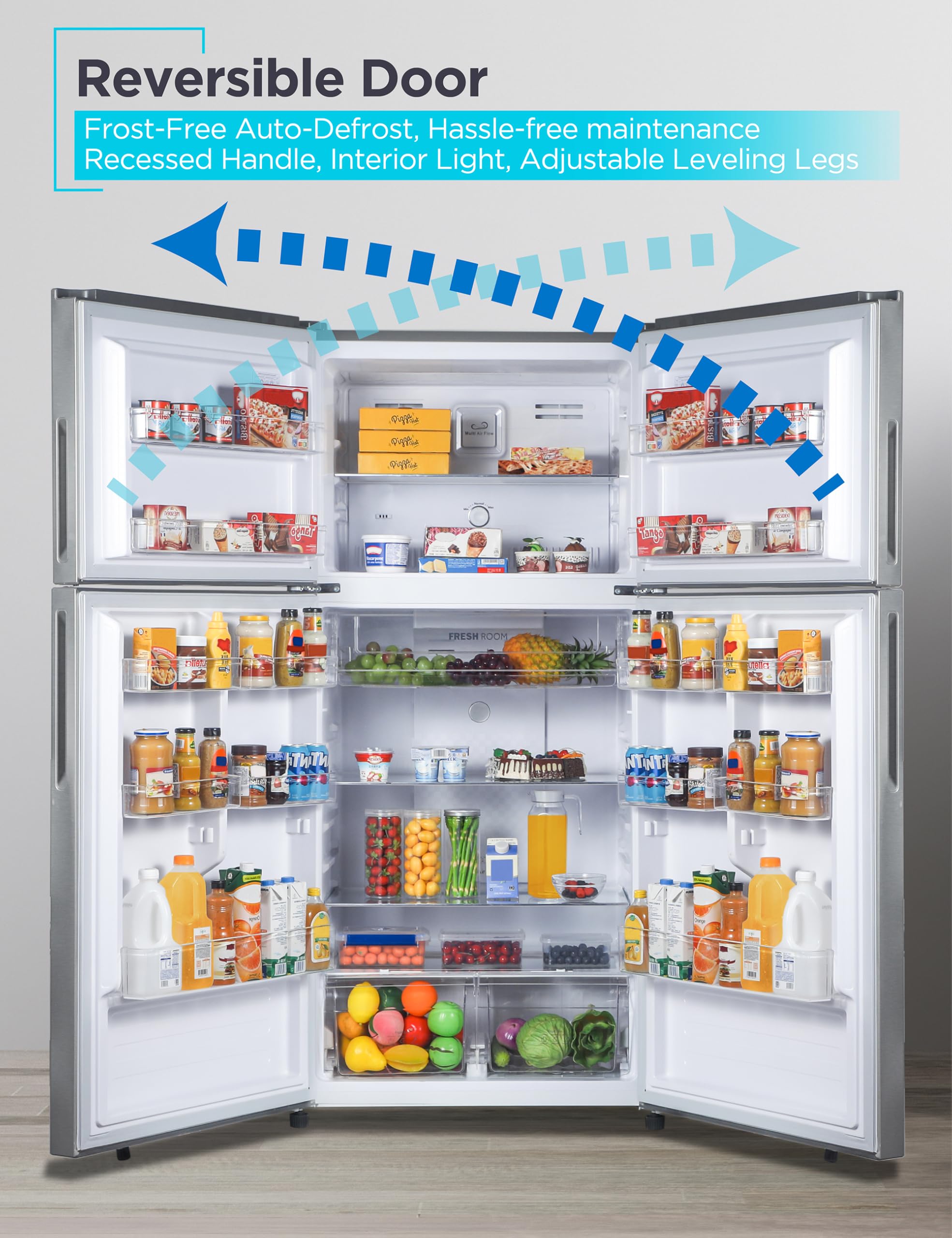 Frost-Free Auto-Defrost: Enjoy hassle-free maintenance with frost-free auto-defrost. Ensures your refrigerators top freezer stay free from ice build-up, making it efficient and easier to keep clean