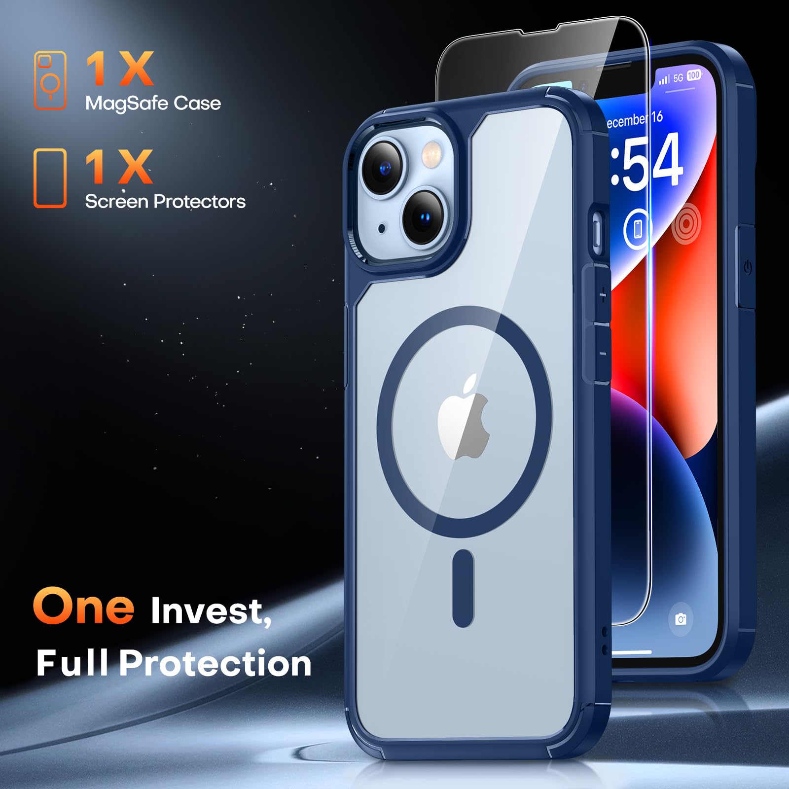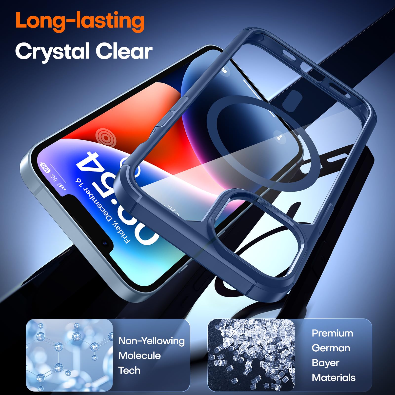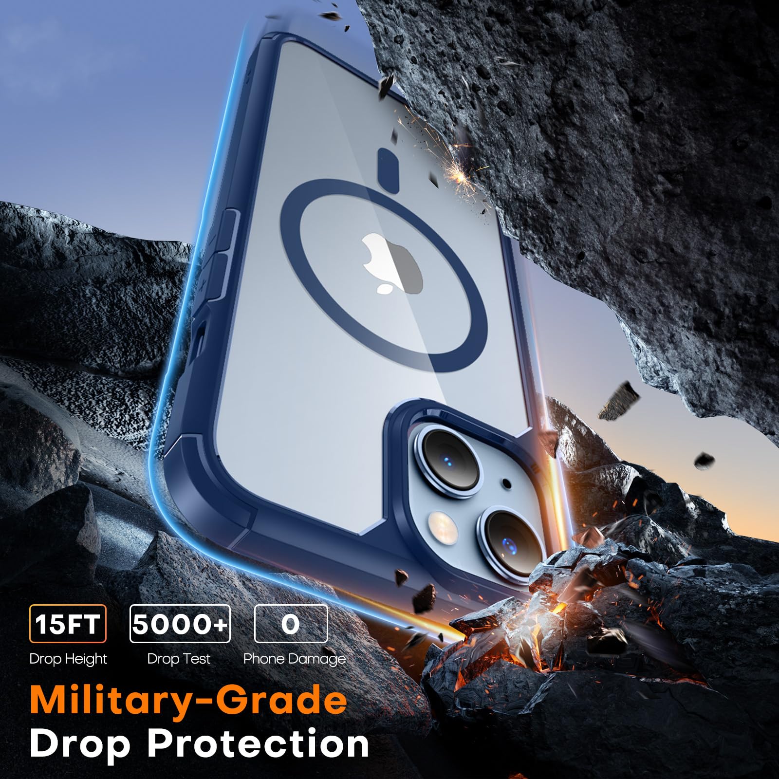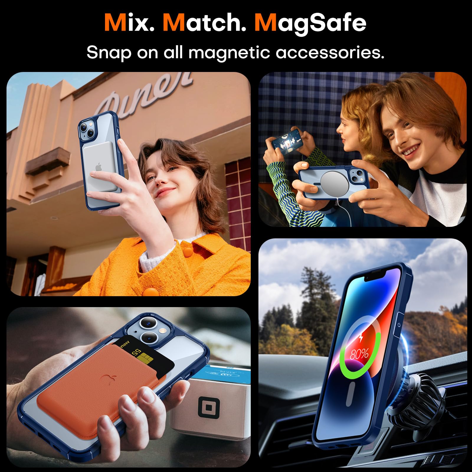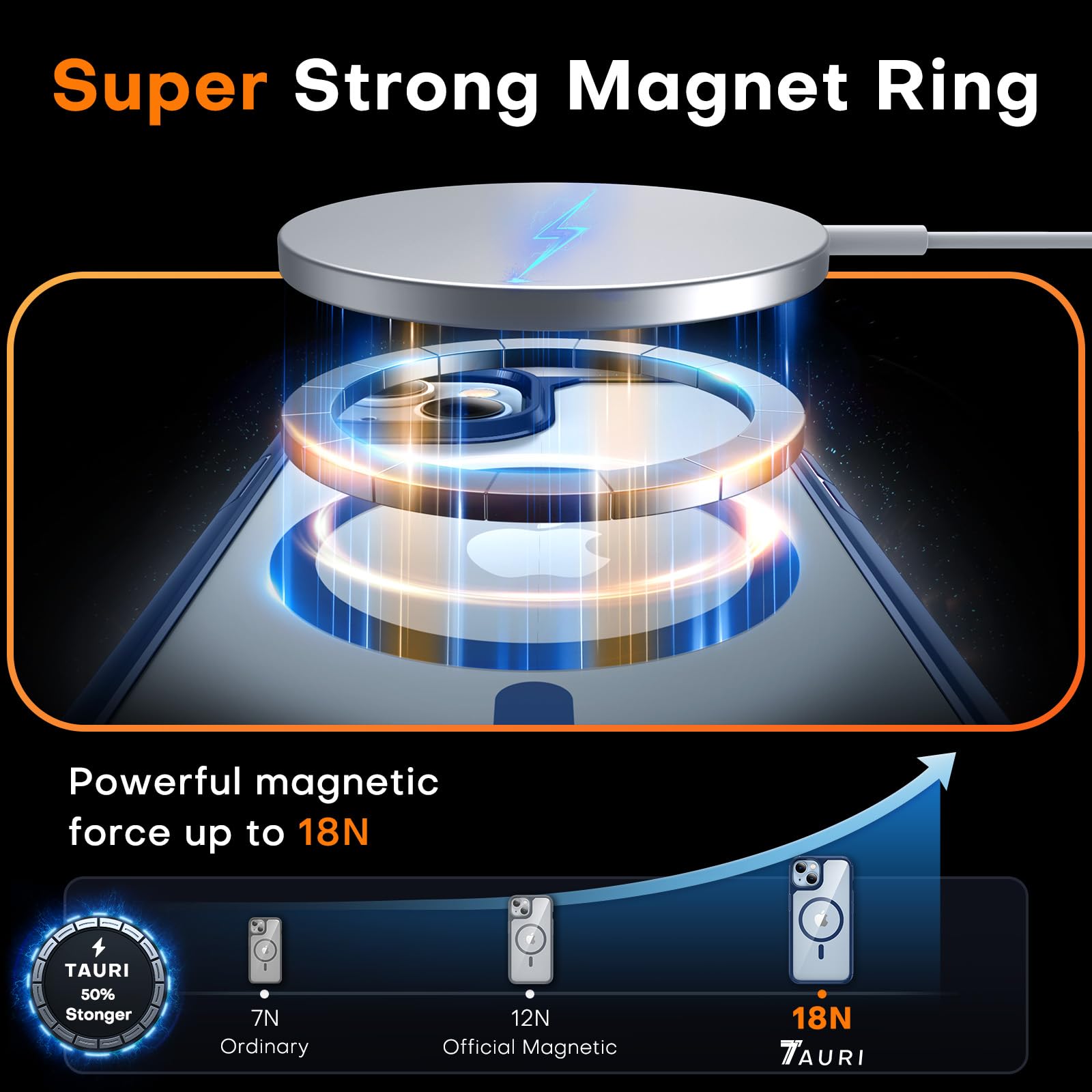 【Strong Magnetic Power】The Super N52 Magnets can strengthen the magnetic connection and ensure auto-alignment to make wireless/ Mag-safe charging faster and safer than before. This Magnetic Case for iPhone 14 is designed for all Qi-certified Mag-safe chargers, Mag-safe wallets, and car mounts. TAURI for iPhone 14 Case will not fall, no matter how it shakes