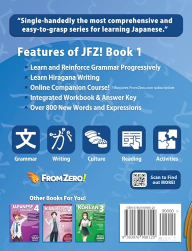 This is the LATEST EDITION (Update 8.0) Japanese From Zero! is an innovative and integrated approach to learning Japanese developed by professional Japanese interpreter George Trombley and co-writer Yukari Takenaka. The lessons and techniques used in this series have been taught successfully for over ten years in classrooms throughout the world. Using up-to-date and easy-to-grasp grammar, Japanese From Zero! is the perfect course for current students of Japanese as well as absolute beginners. In Book 1 of the Japanese From Zero! series, readers are taught new grammar concepts, over 800 new words and expressions, and also learn the hiragana writing system. Features of Book 1: * Integrated Workbook with Answer Key * Over 800 New Words and Expressions * Learn to Read and Write Hiragana * Easy-to-Understand Example Dialogues * Culture Points about Japan * Bilingual Glossaries with Kana and Romaji ...and much more!