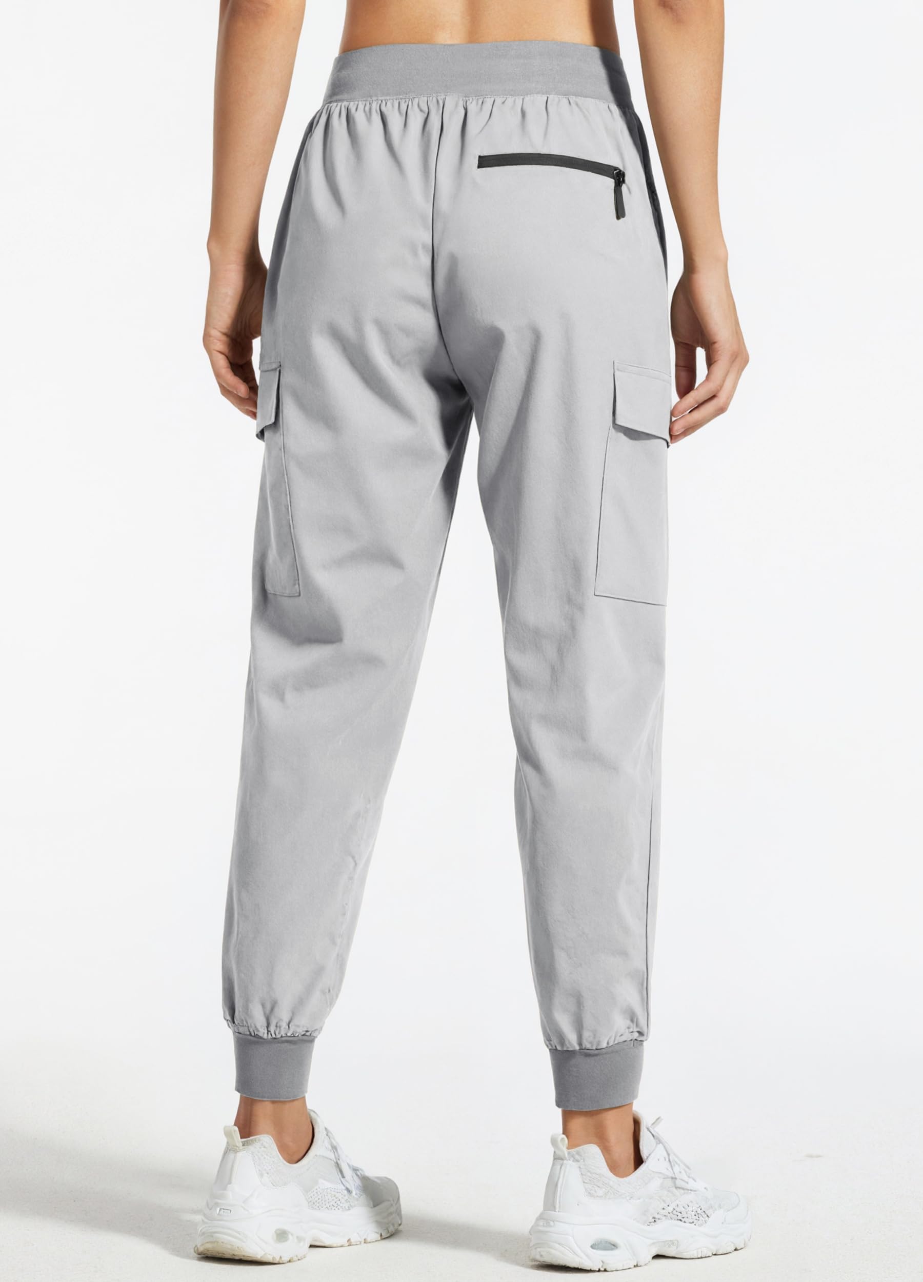 Elastic wasitband with drawstring for a adjustable fit. Stretchy ankle cuffs for a sporty look and easy wear