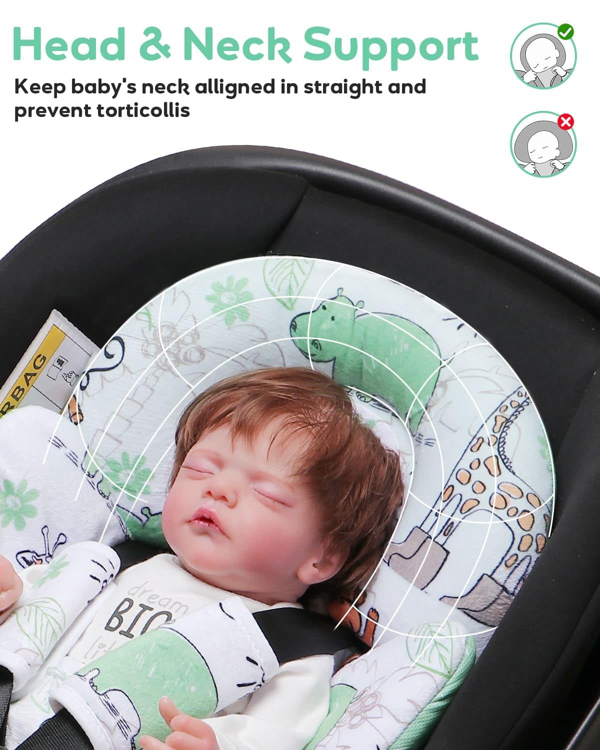 Baby's Full Body Support: 24.8*16.9*2.36 inches thicker padding. Our newborn carset insert cushion is fully upgraded to provide maximum protection for baby. The larger and fuller head support and larger and thicker body support, providing extra stability and support for baby's head, neck and body.