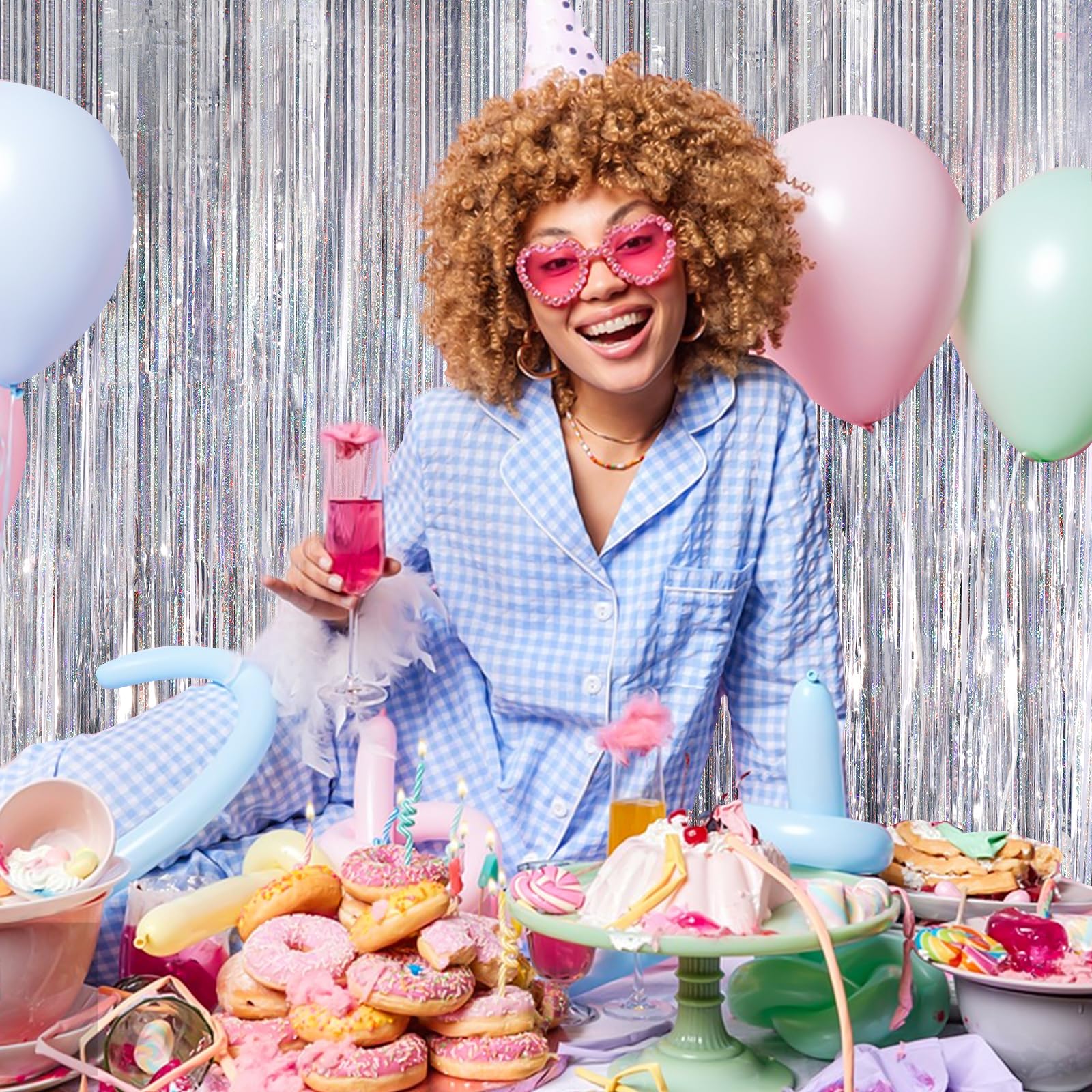 🎈Package Included: The package contains 4 packs of aluminum foil tassel curtains with a size of 3.3*8.3ft. It is long enough for any occasion. Please do not stick aluminum foil curtains to uneven or stained walls to prevent them from falling off!