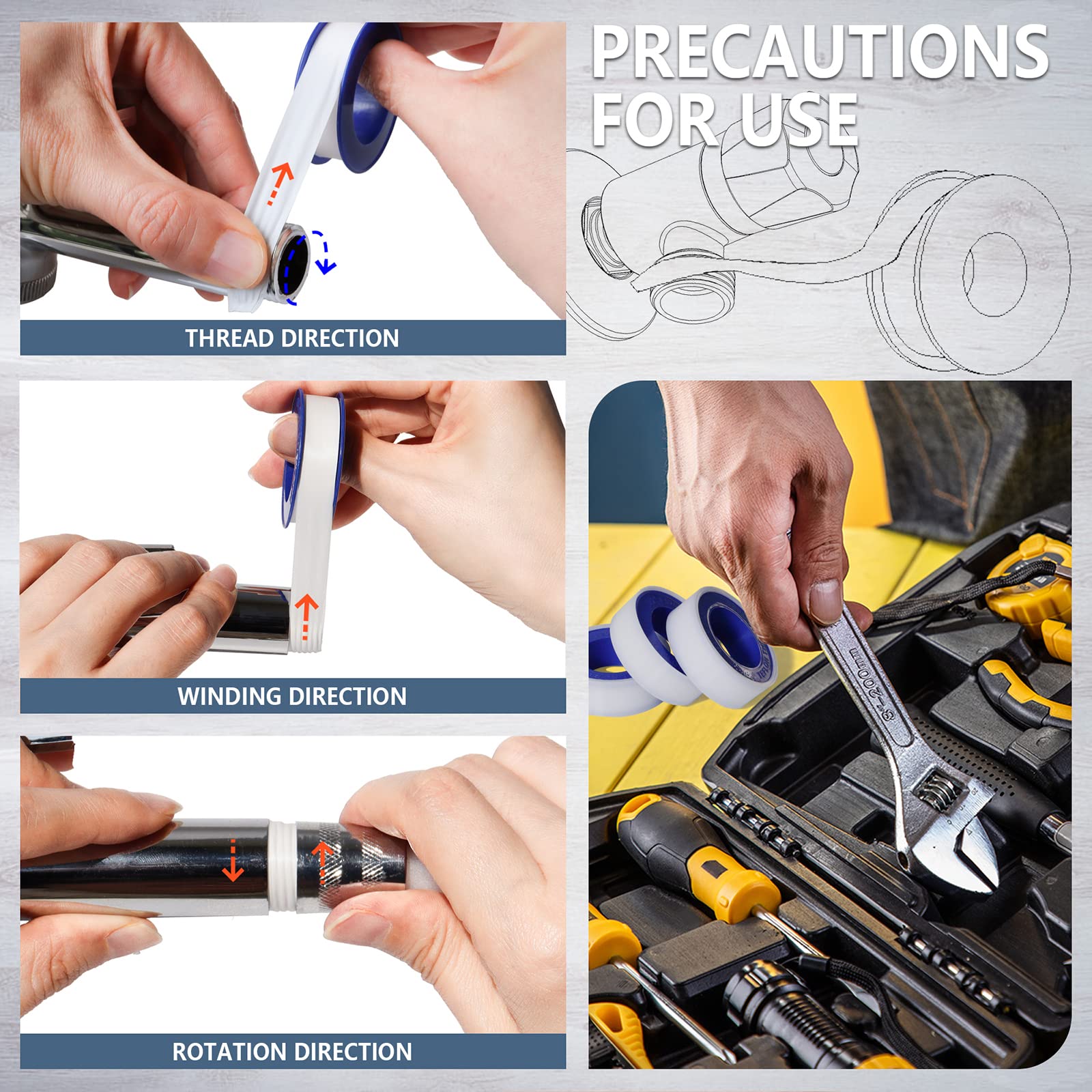 WIDELY USED: Sealing tape plumbing has strong sealing properties to prevent the leakage of water or gas.Can be used in the sealing and connection of threaded pipes.