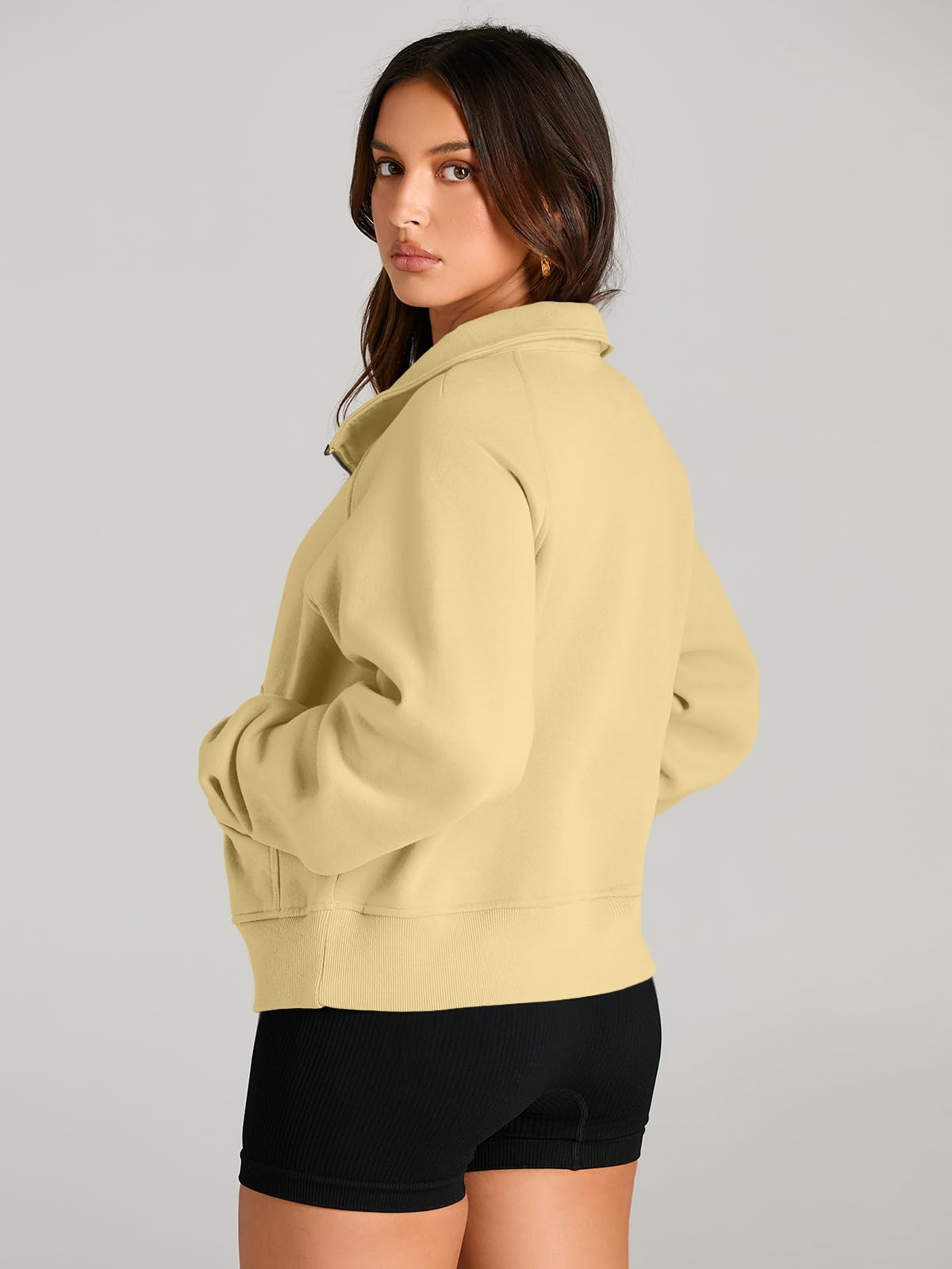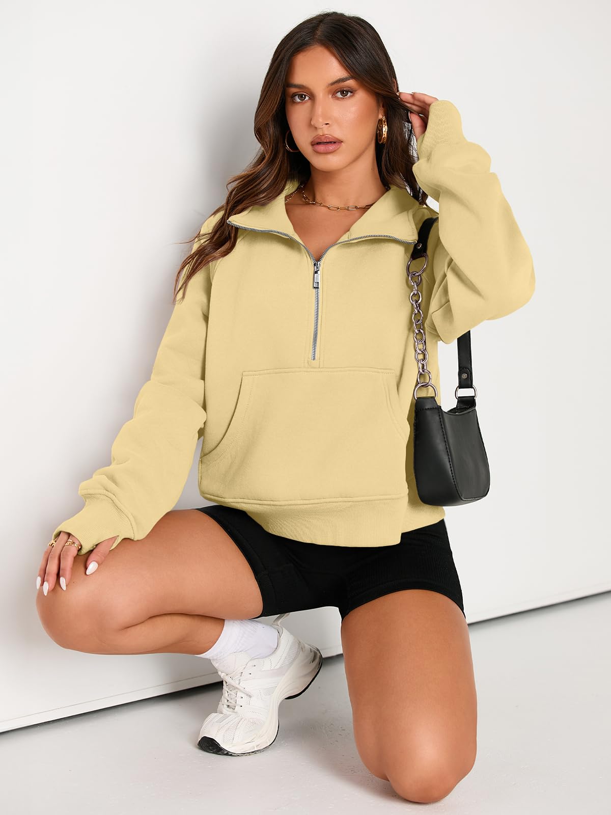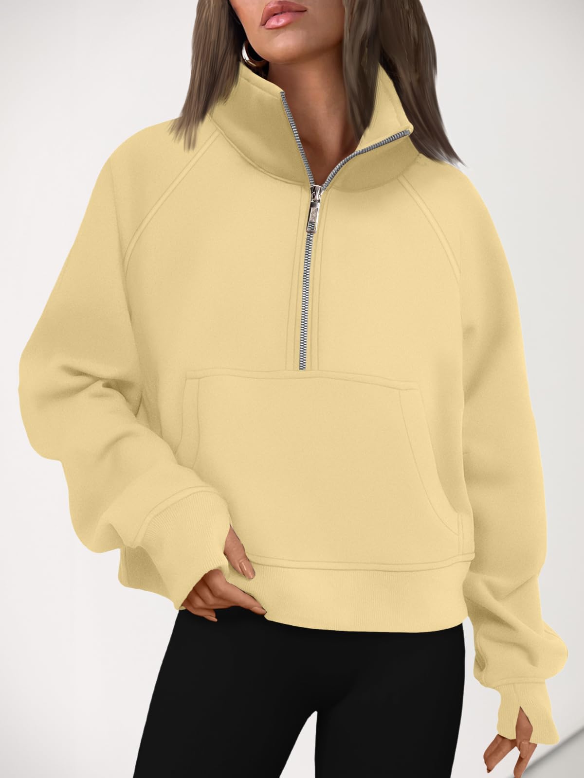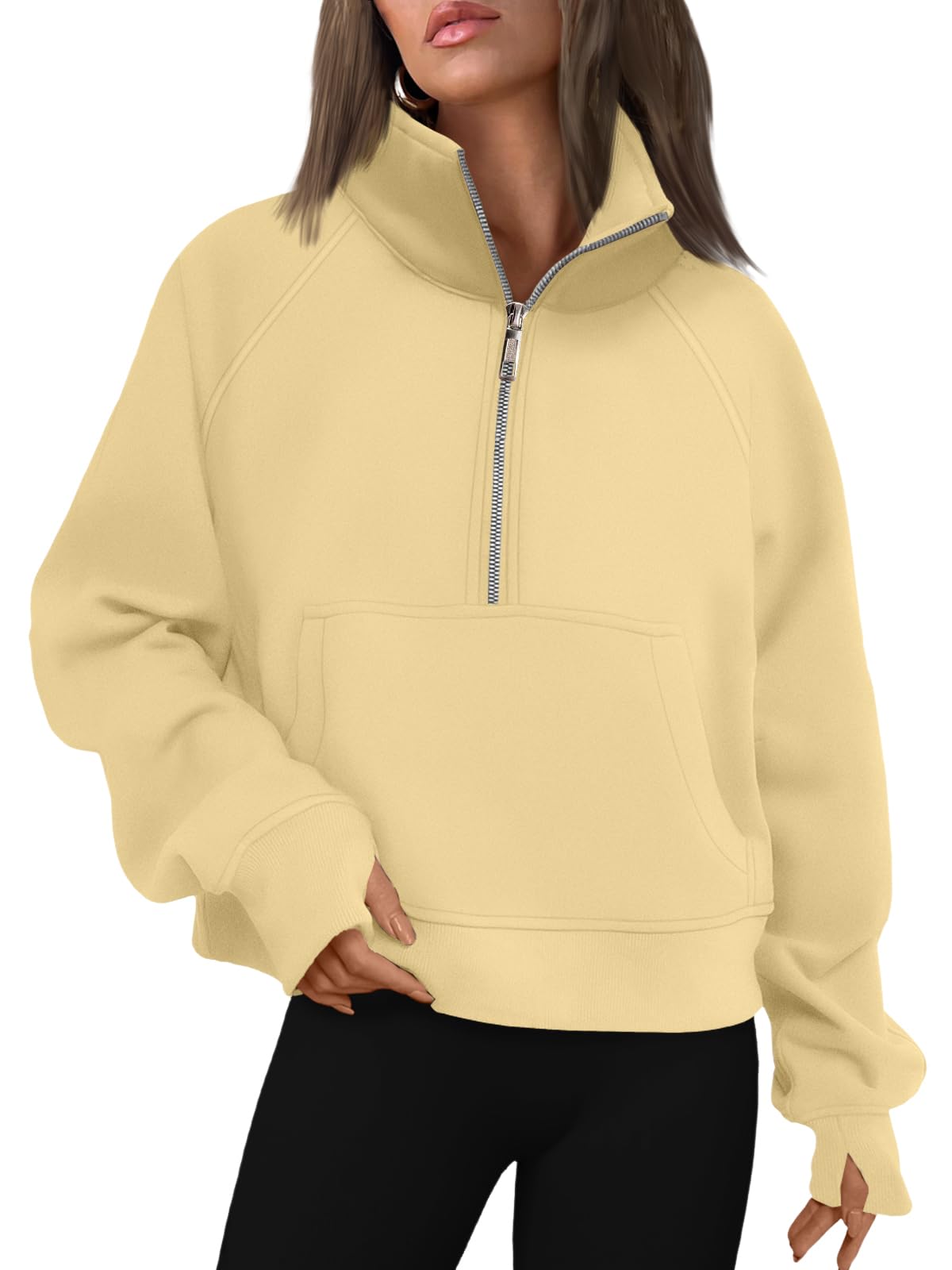 ★Fashion: 1/2 zip up collar sweatshirt, the zipper works smoothly, solid color, stand collar, y2k clothing, fleece lined, soft inside, relaxed fit, crop top