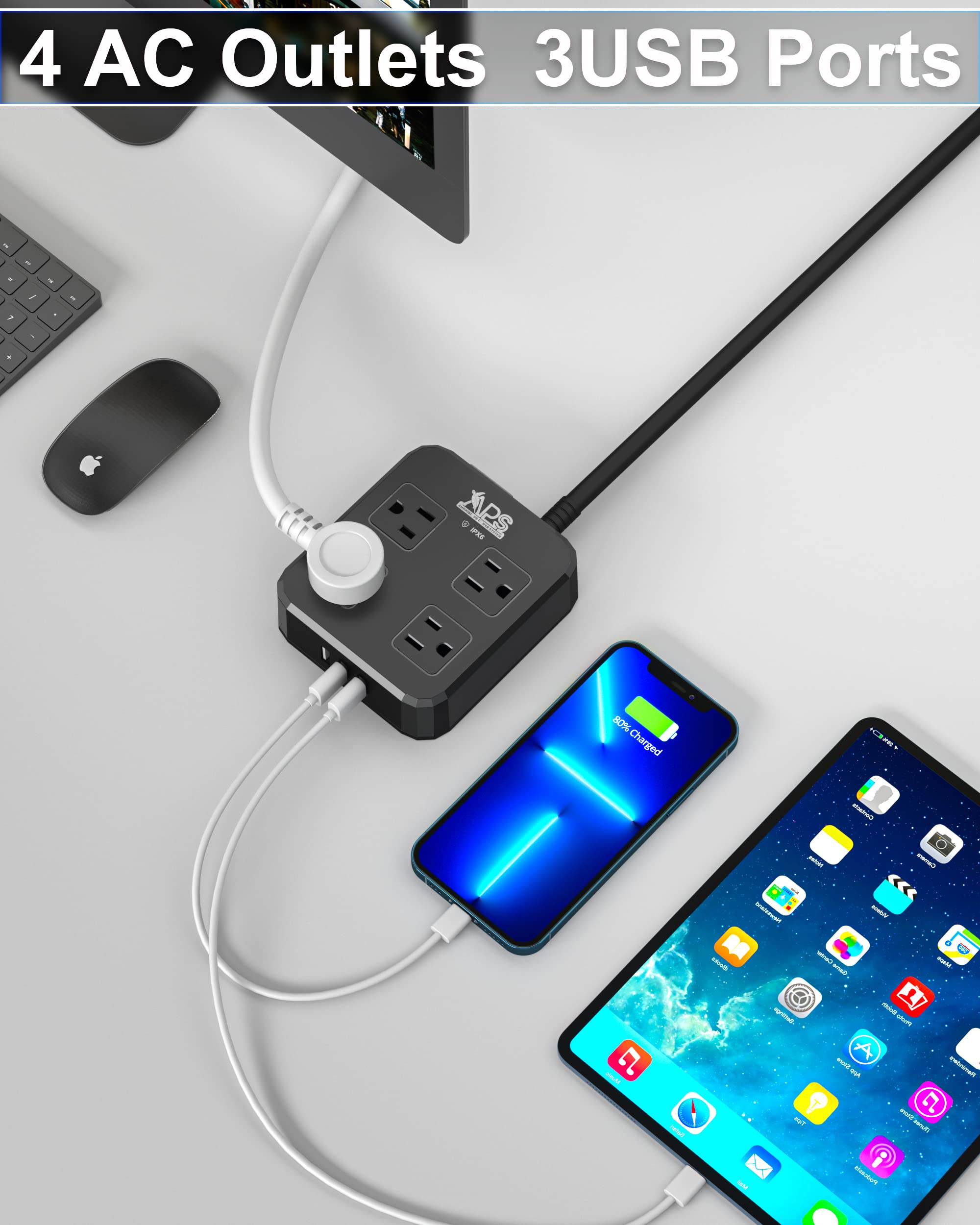 4 Wide Spaced Outlets + 3 USB Ports: Accommodates bulky plugs without blocking; fast-charge devices with 3 USB ports (2 USB-A + 1 USB-C total 3.1A) – ideal outdoor power strip with USB for tools, lights, and phones.
