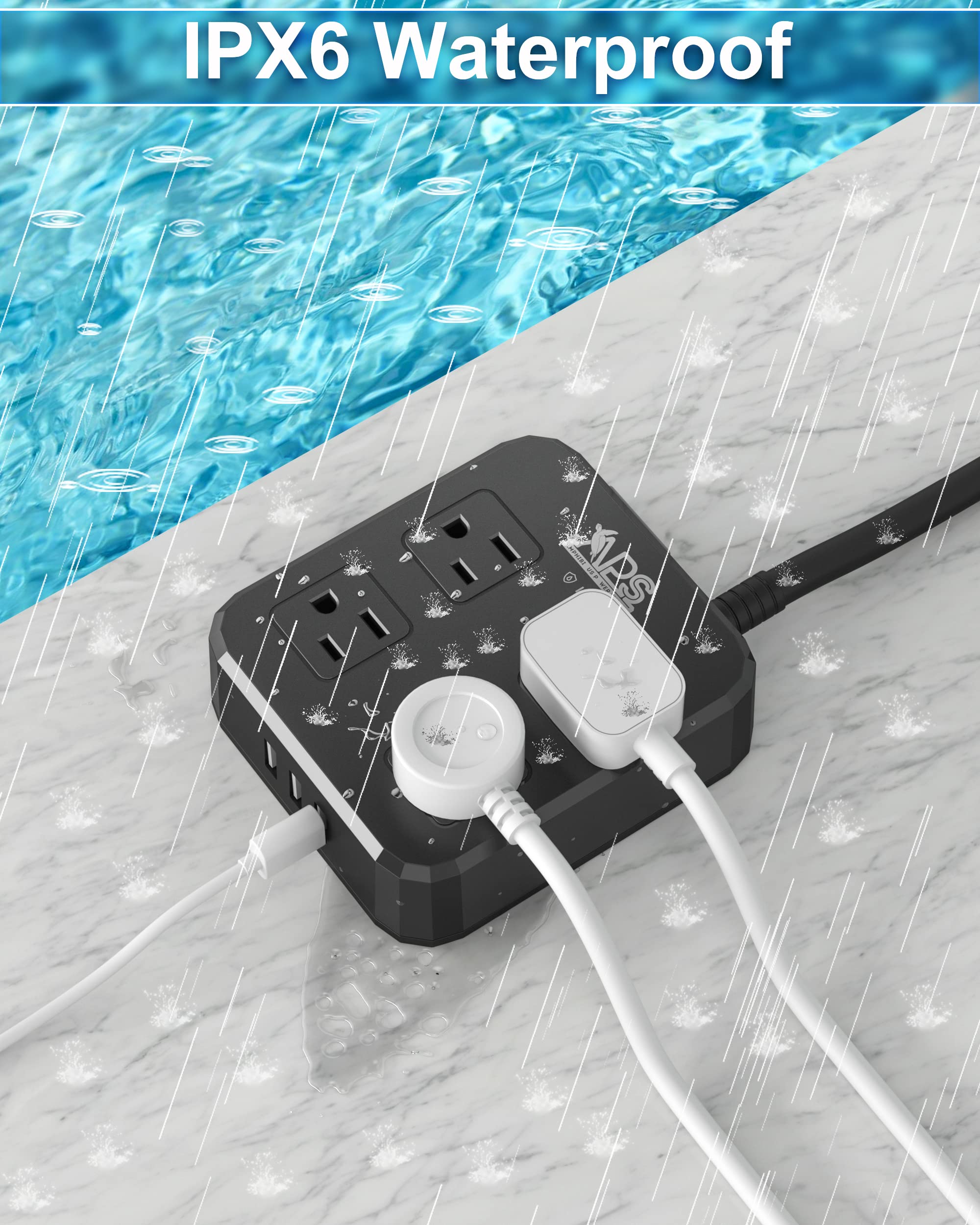 IPX6 Weatherproof & Waterproof Design: Built for outdoor use, this weatherproof power strip withstands rain, snow, and splashes – perfect waterproof surge protector for patio, garden, deck, or Christmas lights decorations.