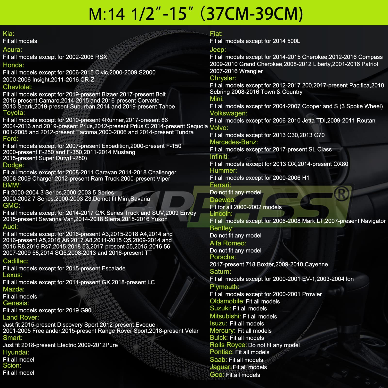 EASY TO INSTALL AND USE: fits all standard steering wheels 14.5" to 15.5" and can be put on effortlessly in seconds. Get the compliments from your family and friends.