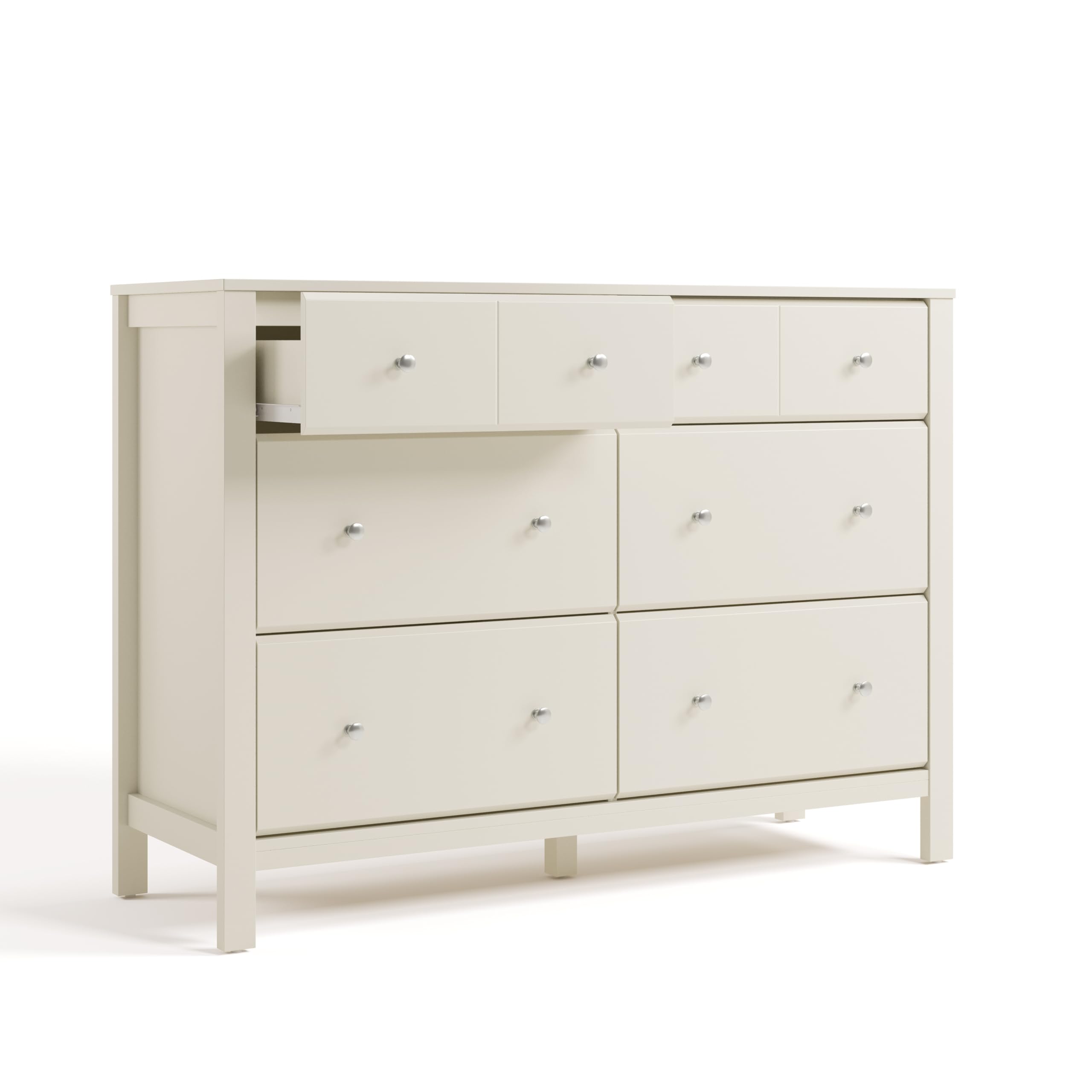Discover the perfect blend of style and functionality with the Storkcraft Horizon 6 Drawer Dresser β your ideal solution for elevating your child's room organization. Infused with a modern, streamlined design, this dresser offers ample storage through its six spacious drawers. Available in four charming finishesβfrom the crispness of White to the boldness of Black, the warmth of Driftwood, to the playful harmony of White with Driftwood accentsβit's designed to harmonize with any room's aesthetic effortlessly. Whether it's a cozy nursery, a vibrant children's bedroom, a welcoming guest room, or even a lively playroom, the Storkcraft Horizon Dresser is a versatile must-have that promises to spark joy and interest in any home setting. The Horizon 6 Drawer Dresser is carefully engineered to surpass strict safety standards set by the Consumer Products Safety Commission (CPSC) and the American Society for Testing and Materials (ASTM). Your child's safety is our top priority, and we fulfill this commitment with our advanced interlocking drawer system and a reliable tip-over restraint kit designed to greatly reduce the risk of furniture tip-over incidents. Built to last through the years, the Horizon Dresser boasts a solid foundation of wood composites combined with hardwearing steel hardware. The addition of pre-installed Euro drawer glides simplifies assembly, ensuring that organizing your little one's clothes and essentials becomes a hassle-free experience. Its timeless design and functionality make it a valuable addition to any family's home, seamlessly adapting to the evolving storage needs of your growing child. Complete your Storkcraft Horizon collection with the Storkcraft Horizon 3 Drawer Chest with Changing Topper and the Storkcraft Horizon 5-in-1 Convertible Crib.