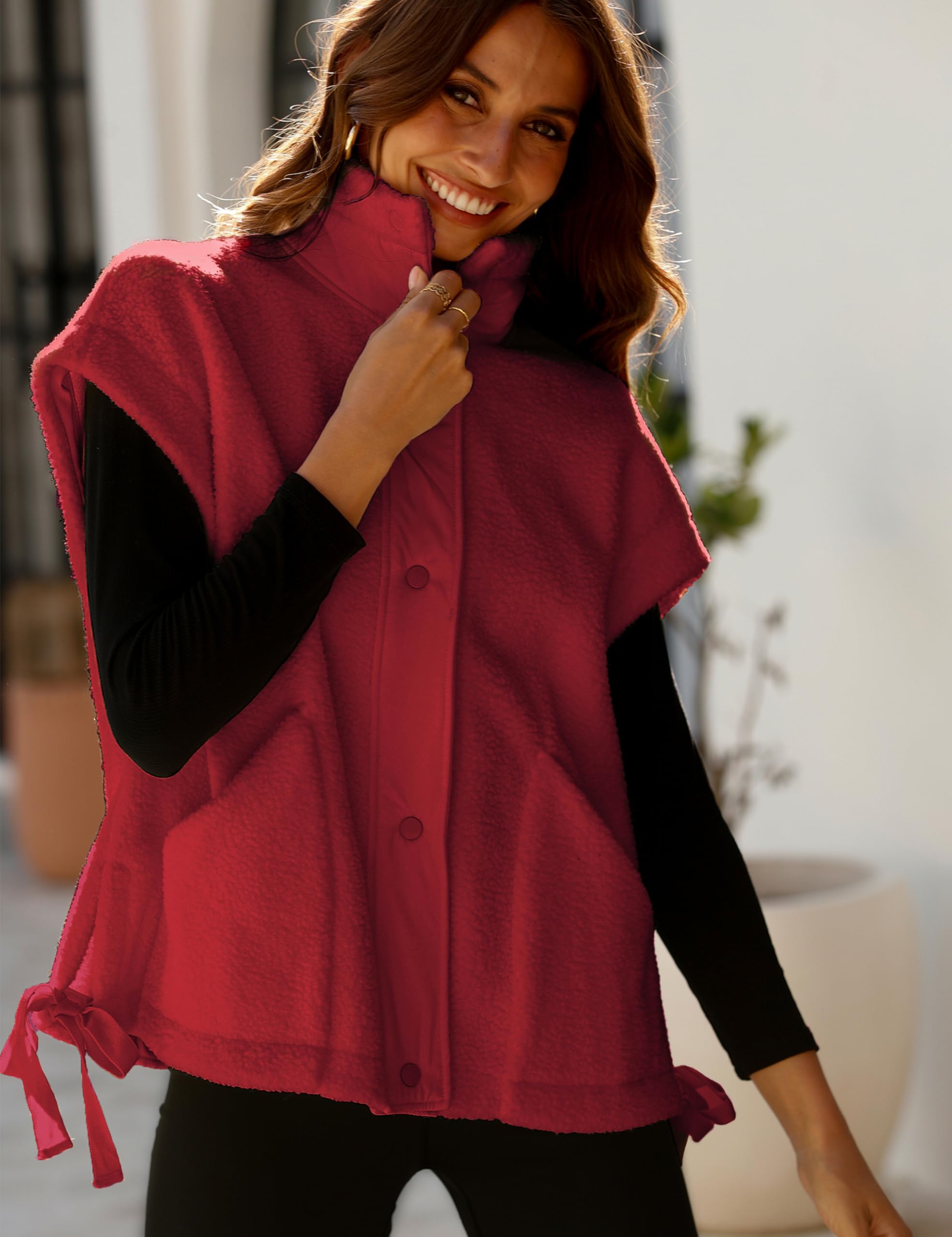 Design:The oversized fleece vest for women,button closure,two hand pocket with zipper,sleeveless,adjustable drawstring hem design,loose fit and warm to keep morre casual and stylish