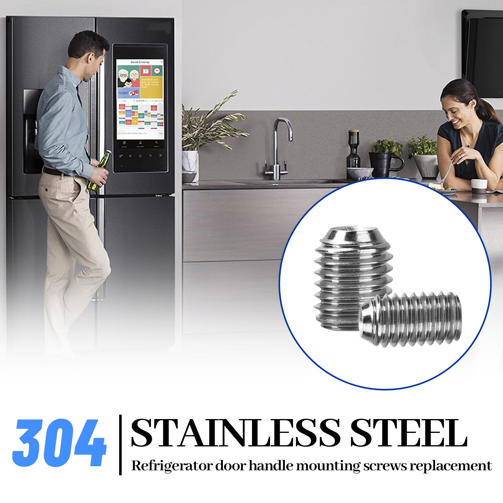 【Door Set Screws Features】 Refrigerator door handle mounting screws replacement : 304 stainless steel,strong hardness,corrosion-resistant, deep thread, firm and non-slip. Ideal for tight areas where the head needs to be flush or below the surface and easy to install. Refrigerator handle screws can be well hidden without affecting the beauty of the project.