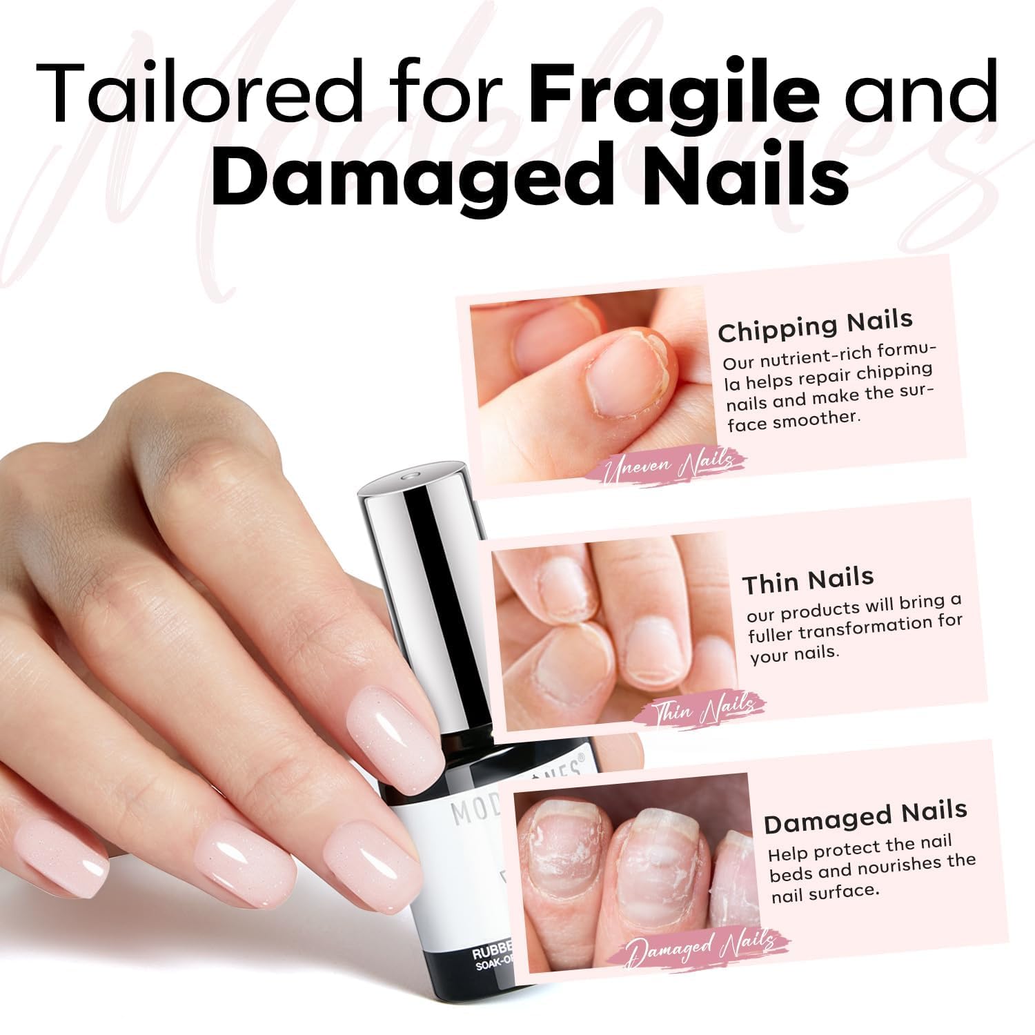 Made for Weak Nails: Ideal for thin, soft, brittle, peeling, or damaged nails. modelones rubber base gel nail strengthener bends with natural nails to prevent breaks and splitting, smooths ridges, and builds natural curvature while promoting healthier nail growth over time
