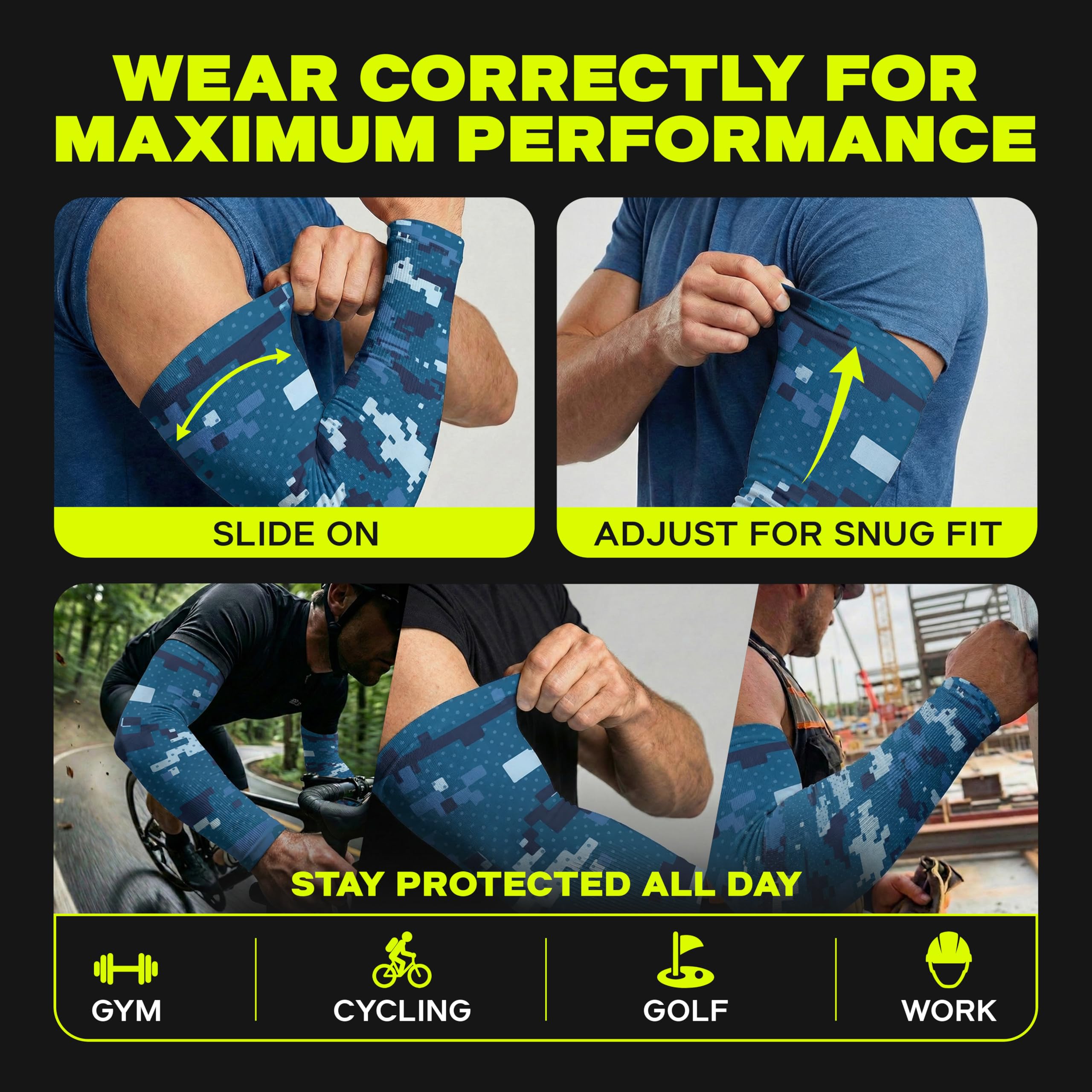 ✅ Versatility: Our product can be used as arm sleeves for men, arm sleeves for women, arm shield against the sun and elements, football arm sleeve, basketball arm sleeve, shooting sleeve or even an arm sleeve for your forearm tattoos or full length sleeve tattoos.
