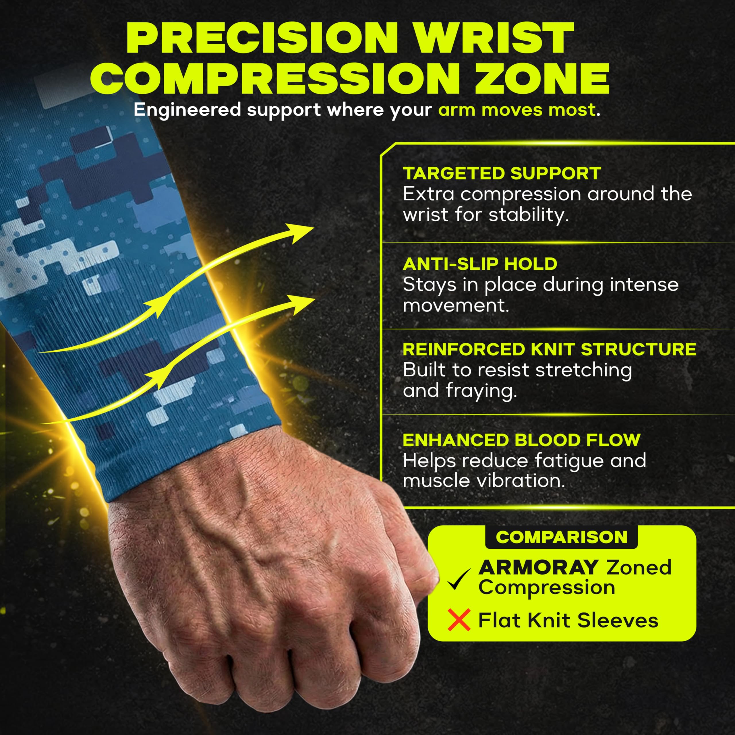 🦾ZERO slip + Pressure Release guaranteed: ARMORAY Arm Compression Sleeves are carefully crafted with Segmented Weave technology, with minimal exterior stitching for optimal comfort and grip. NO rub, NO slip, NO itch. The ergonomic design is knitted to not only provide comfort and protection - but expertly release pressure during strenuous exercise and activities.
