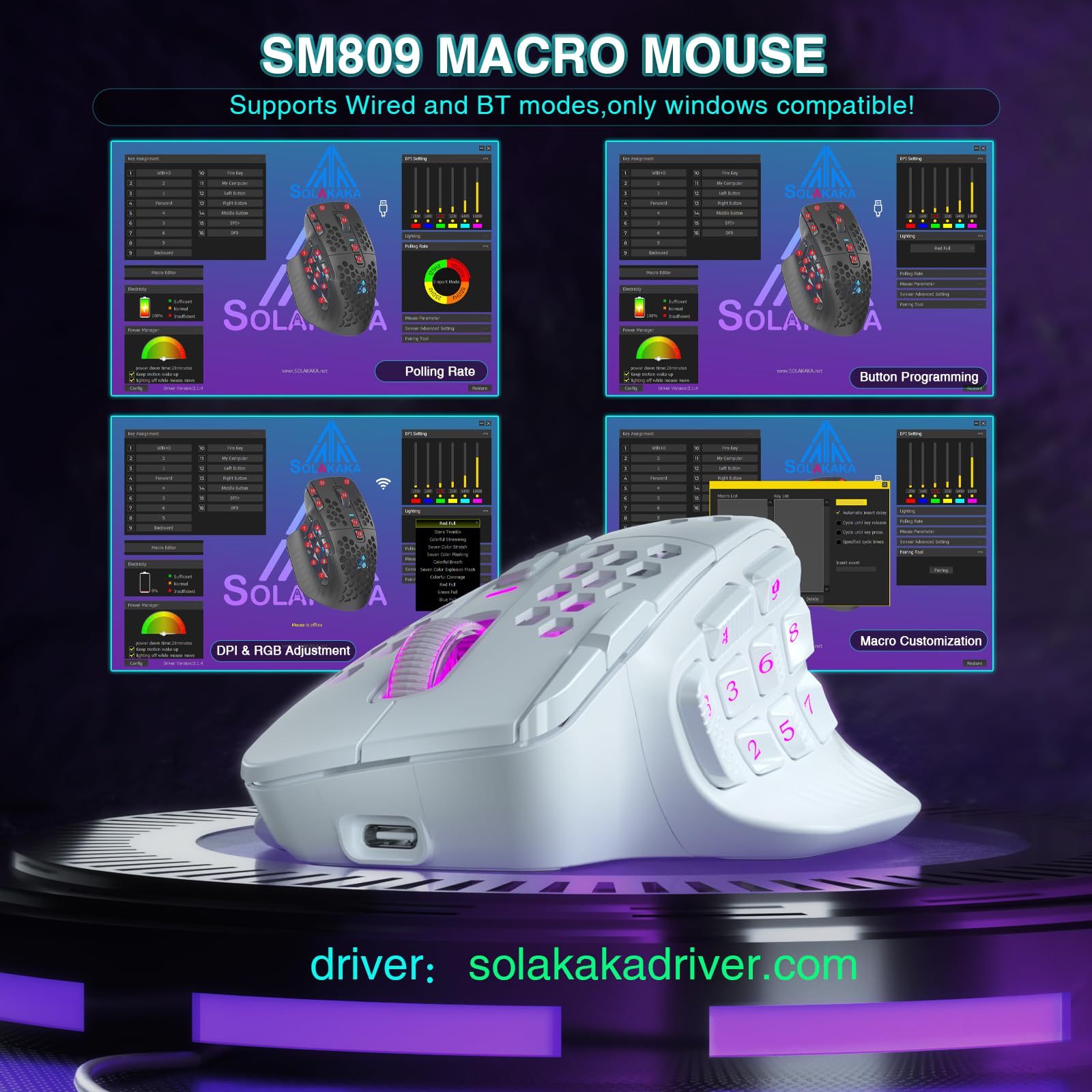 Software supports:The SM809 MMO mouse supports online web drivers,no need to download software also customize the mouse, reset buttons, and set up macro files! enter:solakakadriver.com