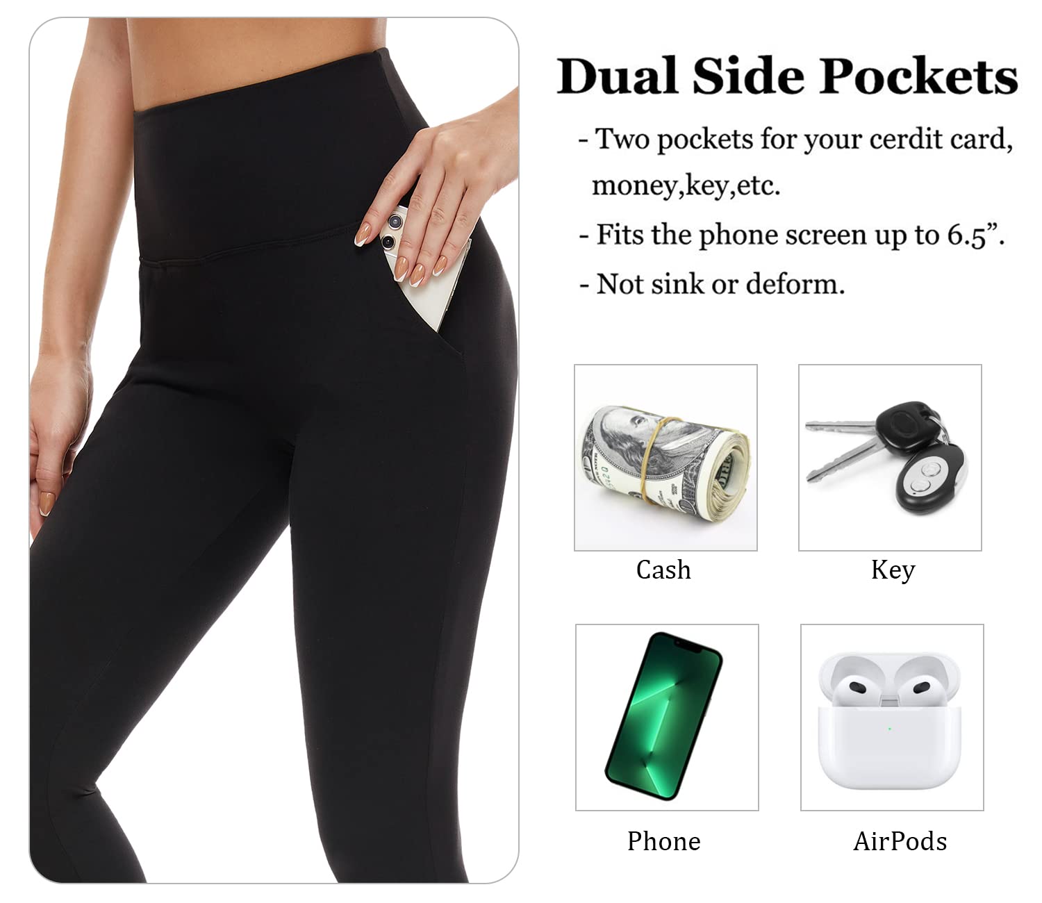 β DEEP SIDE POCKETS | These leggings feature with two side pockets, the side pockets are deep that have enough room for a smart phone.No more worrying about where to put your phone or other essentials during your workout.