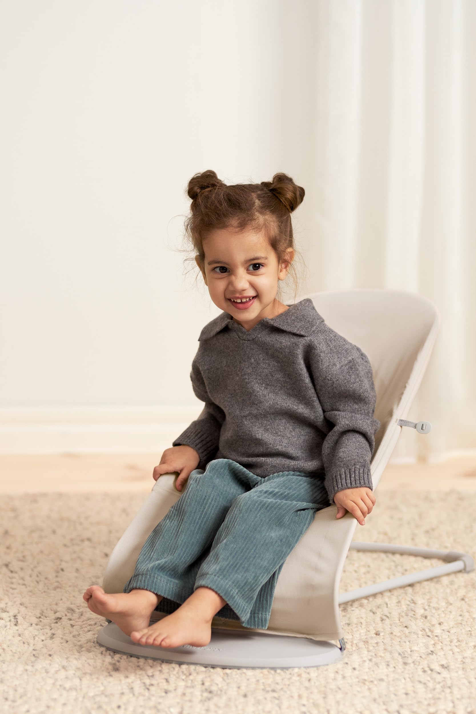 Our bouncer rocks gently when your baby waves their arms and legs. No batteries are required—our baby bouncer runs on pure fun!