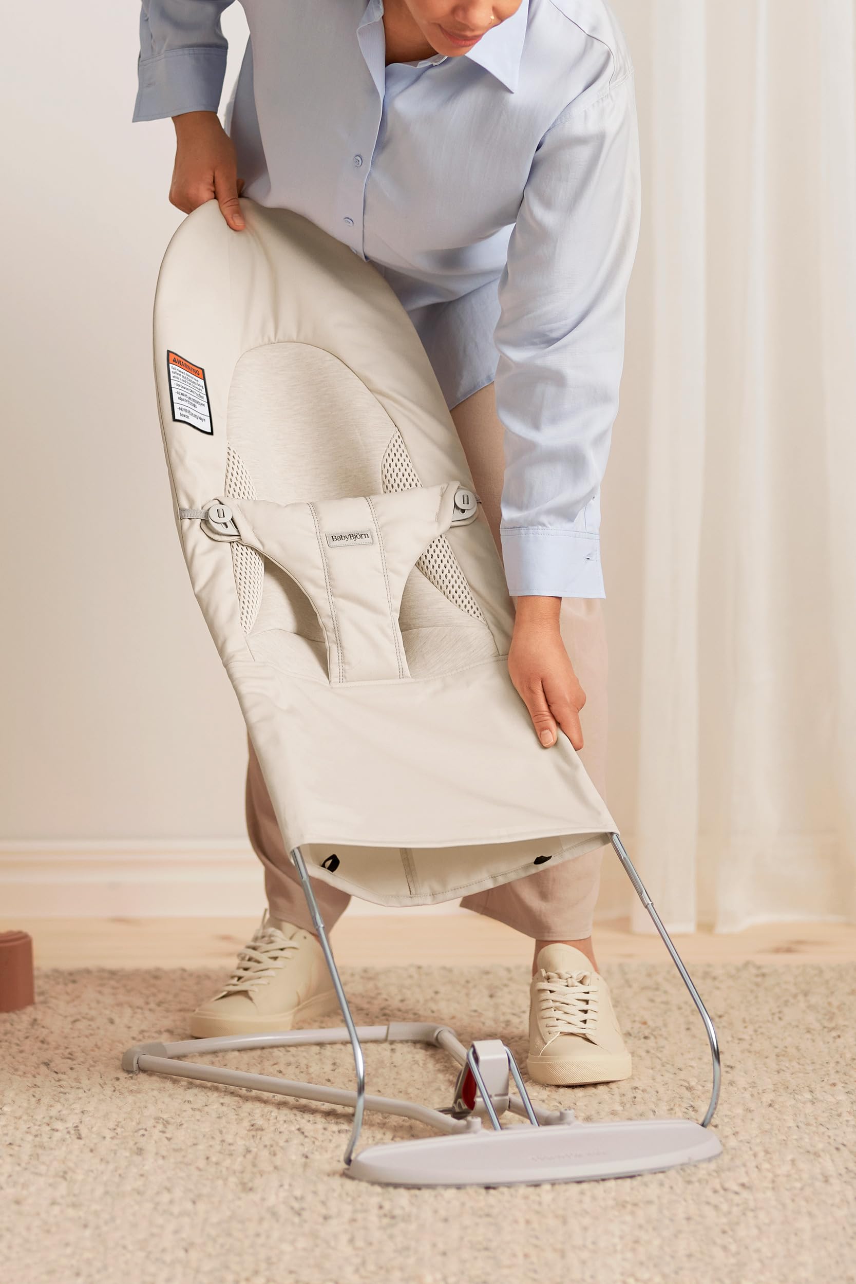 Our lightweight bouncers are easy to move around and take with you—they're a cozy place for your baby to play close by you while you have your hands free for a while. The natural rocking of a bouncer usually has a comforting effect on a very young baby. As your baby grows and learns how to control the rocking, the bouncer becomes even more fun and also stimulates your baby's balance and motor skills.
