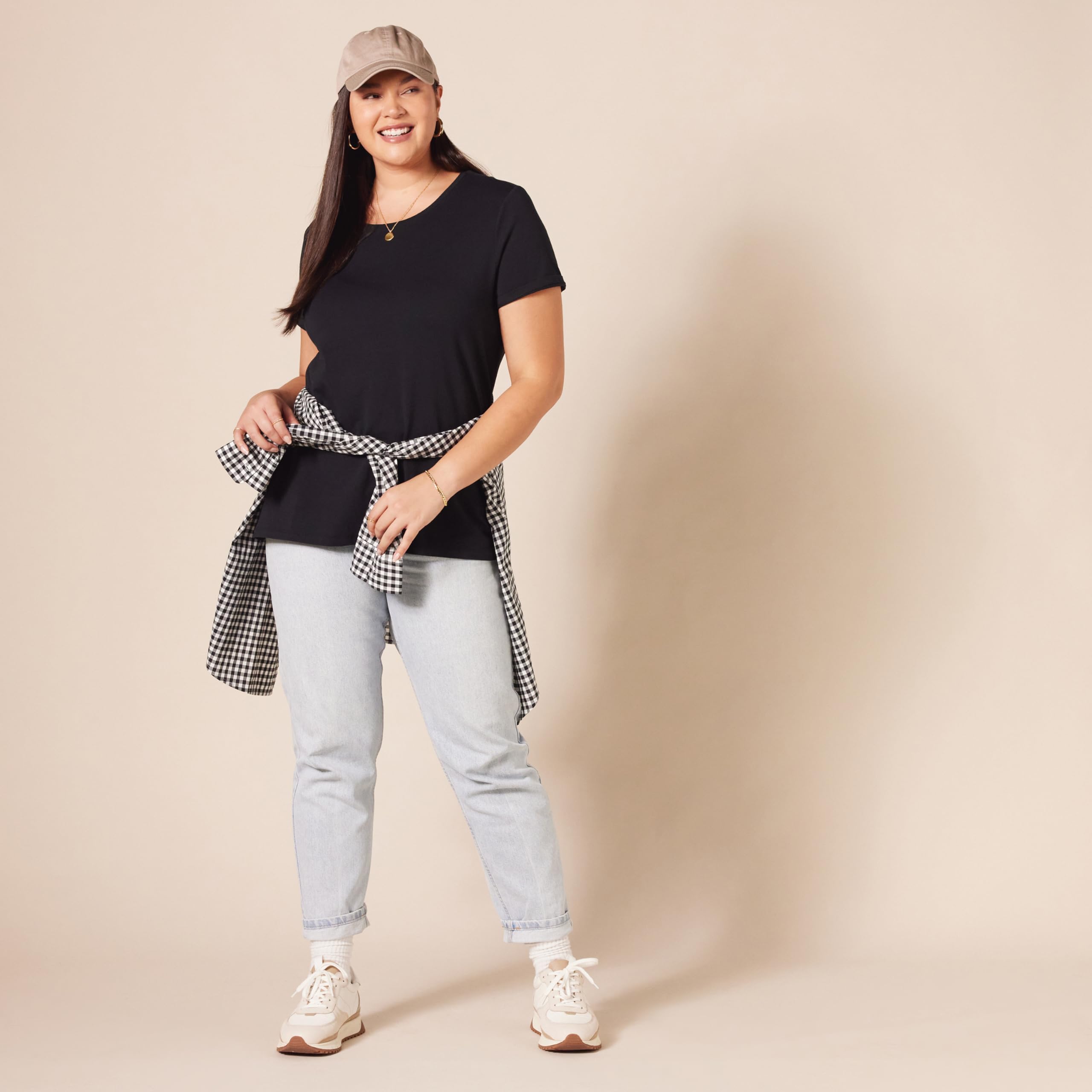 ESSENTIAL T-SHIRT: This versatile t-shirt is a classic wardrobe essential, perfect layered under your favorite jacket or cardigan, or wear on its own for casual, everyday style