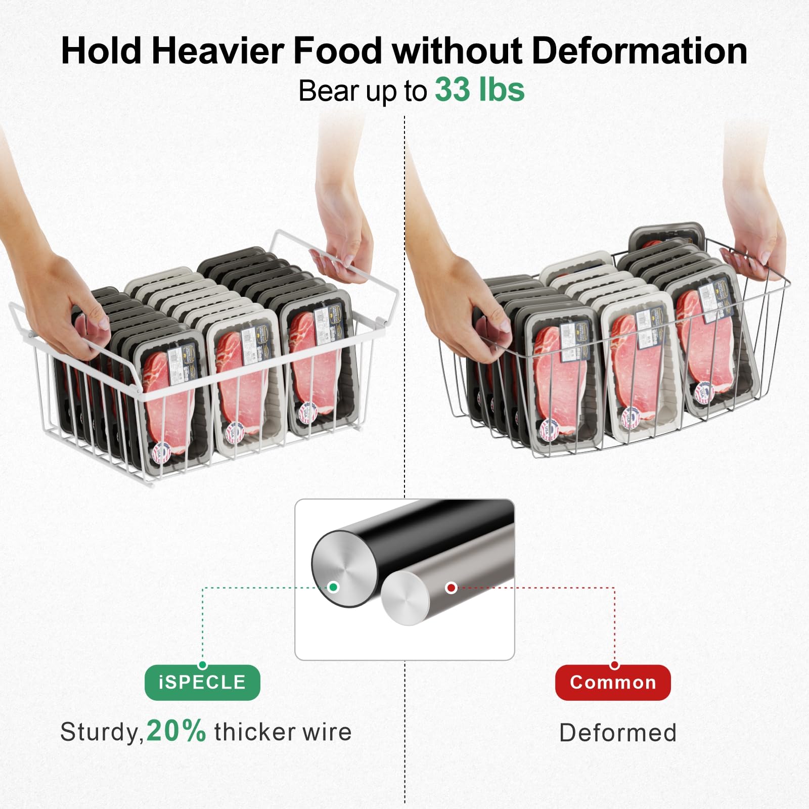 [Heavy-Duty Construction For Big Loads] Features 20% thicker metal wire frames than standard freezer baskets for chest freezer, supporting up to 33 lbs (15 kg) of frozen meats; Transparent design lets you spot contents instantly, even in bottom bins; Saves time during meal prep