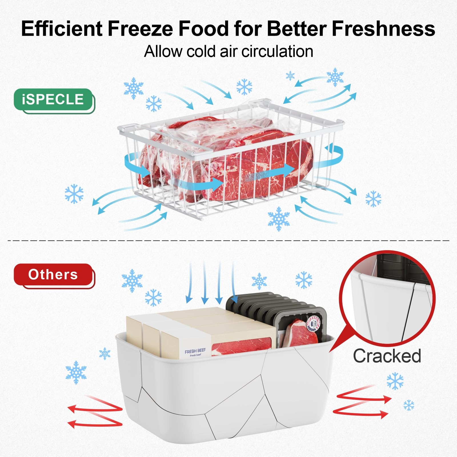 [Optimized Airflow For Faster Freezing] Unlike solid plastic containers, our open-frame design of bins for chest freezer organization promotes better air circulation in your deep freezer; Food freezes quicker while maintaining peak freshness; Perfect for batch cooking and preserving farmers' market finds