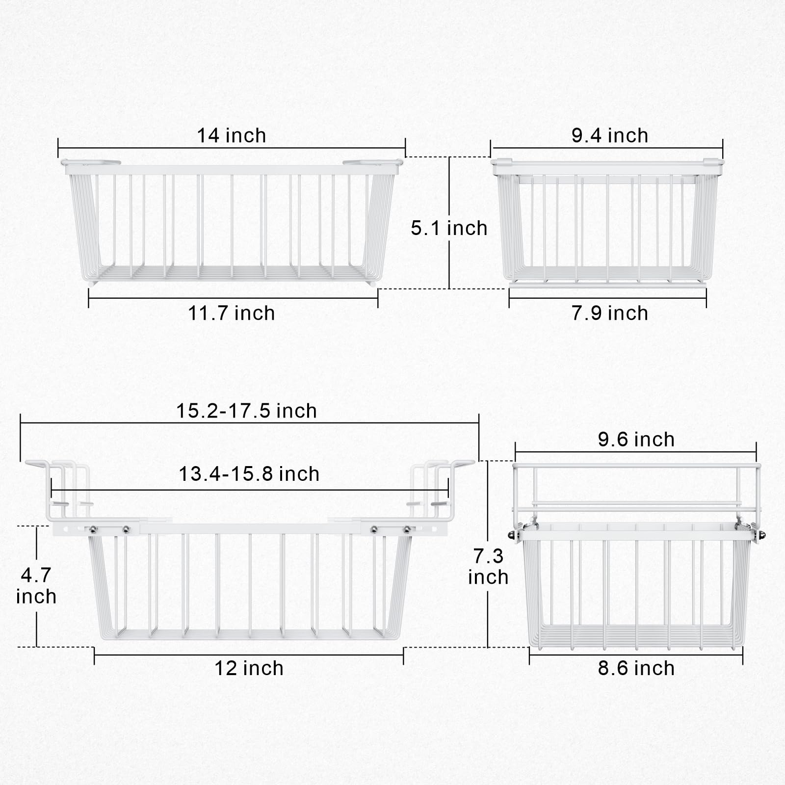 [Fits Most 5 Cu.Ft Chest Freezers] The adjustable handle of the freezer organizer bins expands from 15.2" to 17.5"L to securely fit most 5 cu.ft chest freezers. The stackable chest freezer organizer measure 14"L x 9.4"W x 5.1"H, while the hanging bin adjusts from 15.2"-17.5"L x 9.6"W x 7.3"H. Choose the right set of deep freezer organizer bins based on your needs