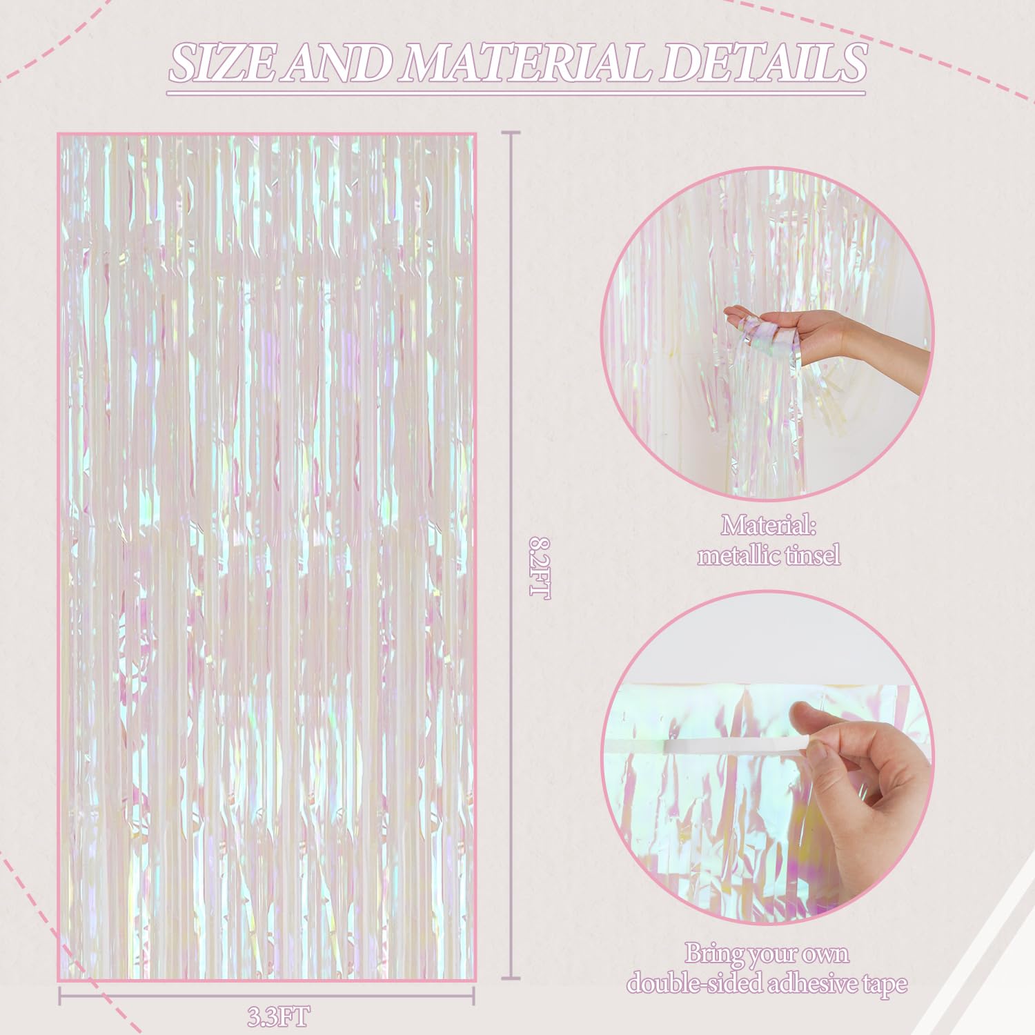 【Package Included】Tinsel Curtain 3 Pack, each foil fringe backdrop size 3.3ft x 8.2ft. It's long enough to fit any decorate occasion.