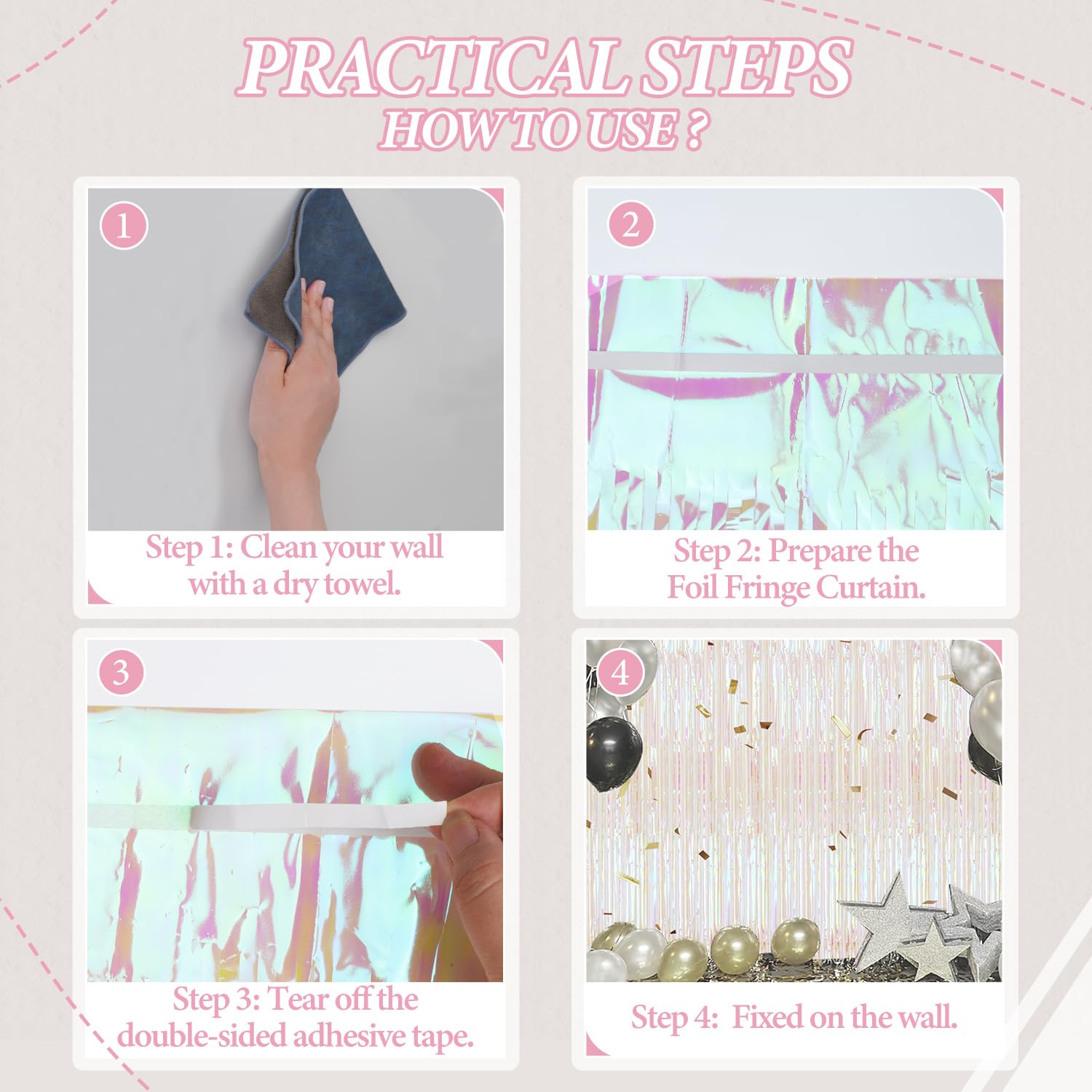 【Widely Applications】These foil curtain backdrops are perfect for Birthday, Christmas, Halloween, Theme Party, Engagement Party, Anniversary, Homecoming, Bridal shower, Bachelorette Party, Baby shower, Graduation, Wedding, Masquerade, Disco, etc.