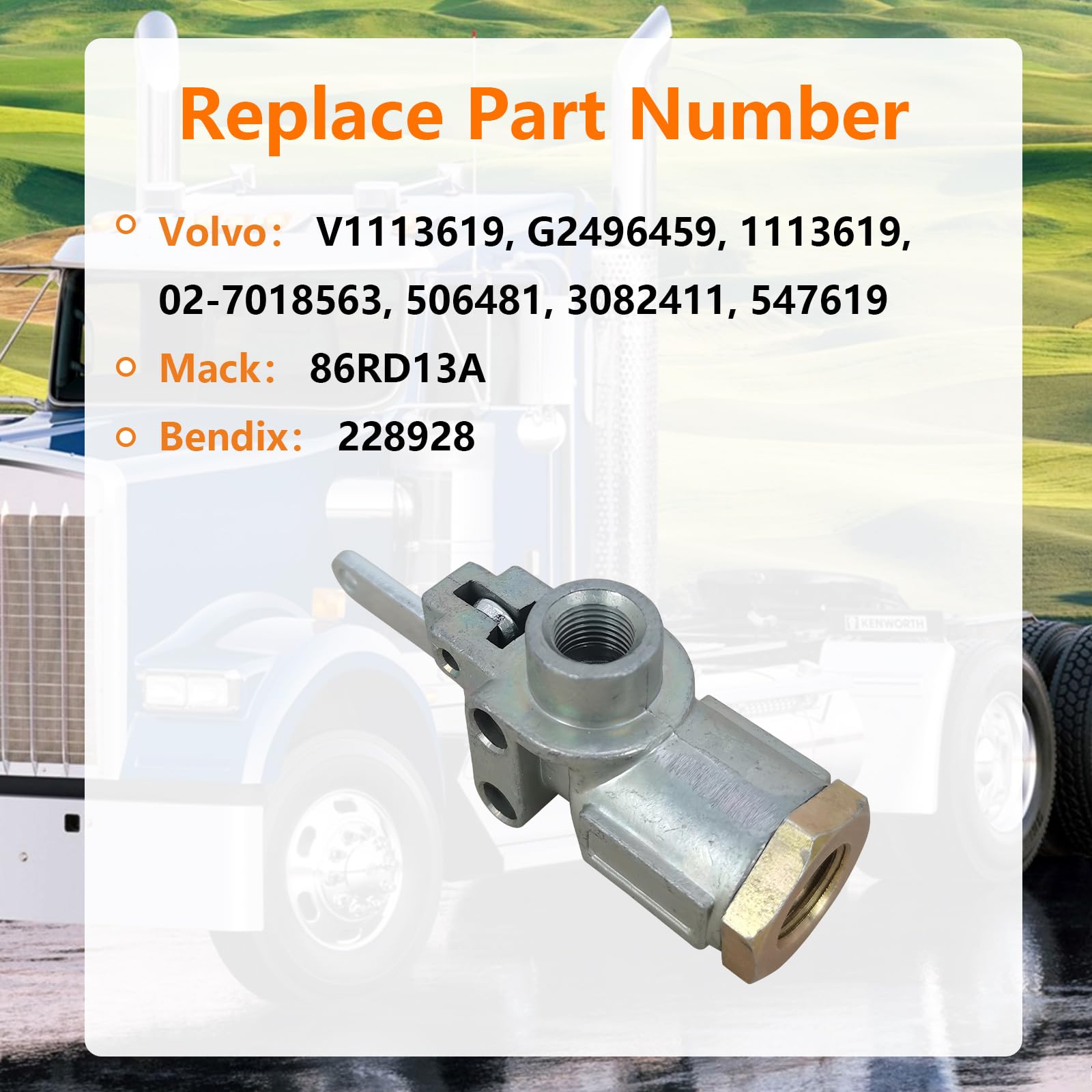 Features: Material: Stainless Steel Color: Silver Type: Vehicle Specific Part number: Volvo V1113619, G2496459, 1113619, 02-7018563, 506481, 3082411, 547619 Mack 86RD13A 228928 Fit for Freightliner International Kenworth Mack Volvo Peterbilt semi trucks trailers Package included: 1 X Air Horn Control Valve