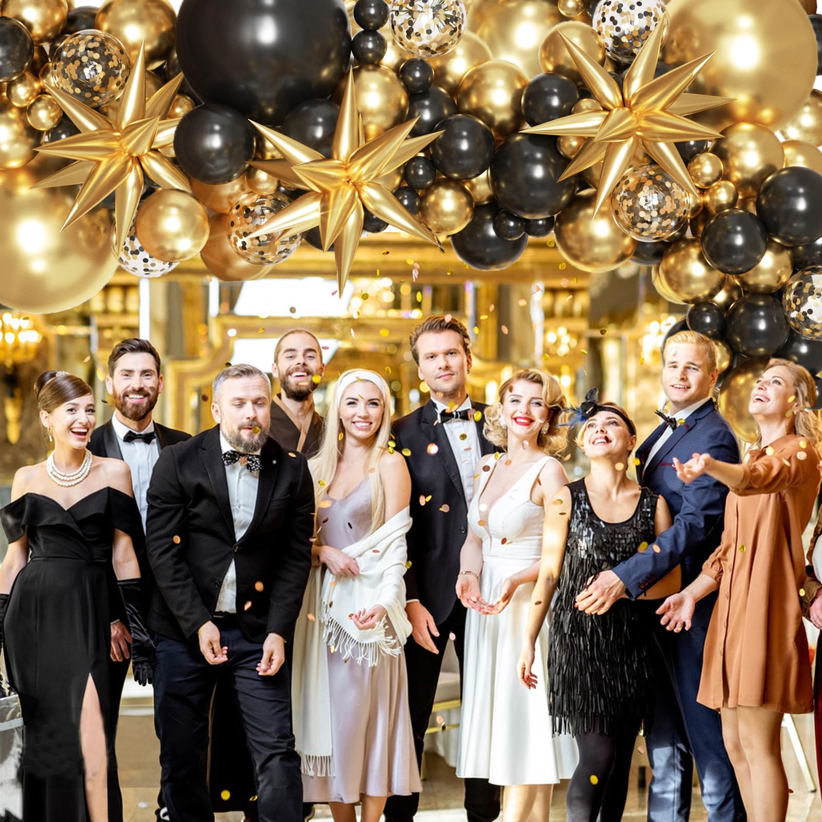 【High Quality Balloons】137pcs black and gold balloon garland kit includes: 62pcs black balloons, 57pcs gold balloons, 12pcs gold black cofetti balloons, 3pcs gold explosion star aluminum foil balloons. High-quality latex materials are thick, long-lasting, and won't easily pop. Both air or helium easily inflate. Please note: Don't inflate balloon more than 90% to avoid sudden popping.