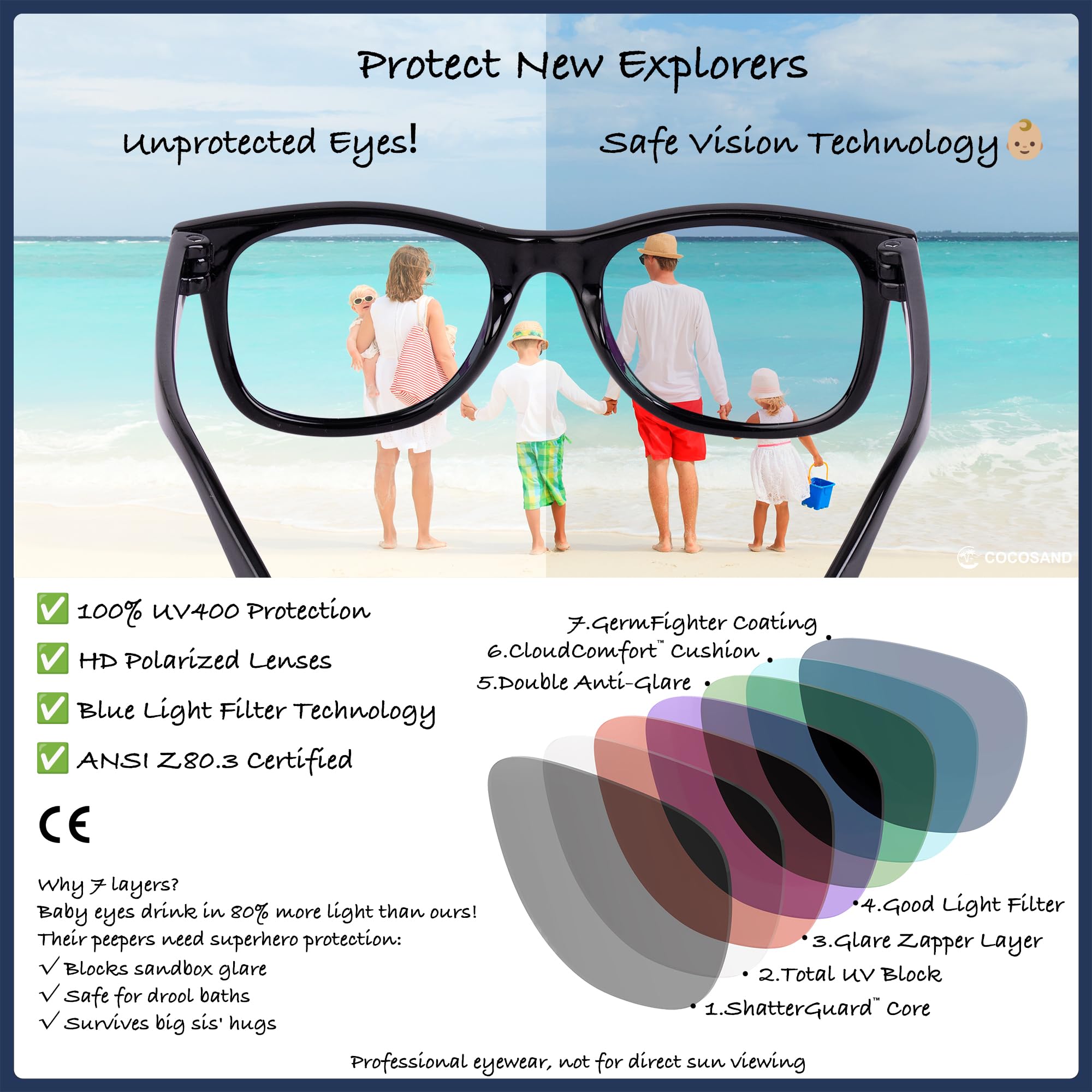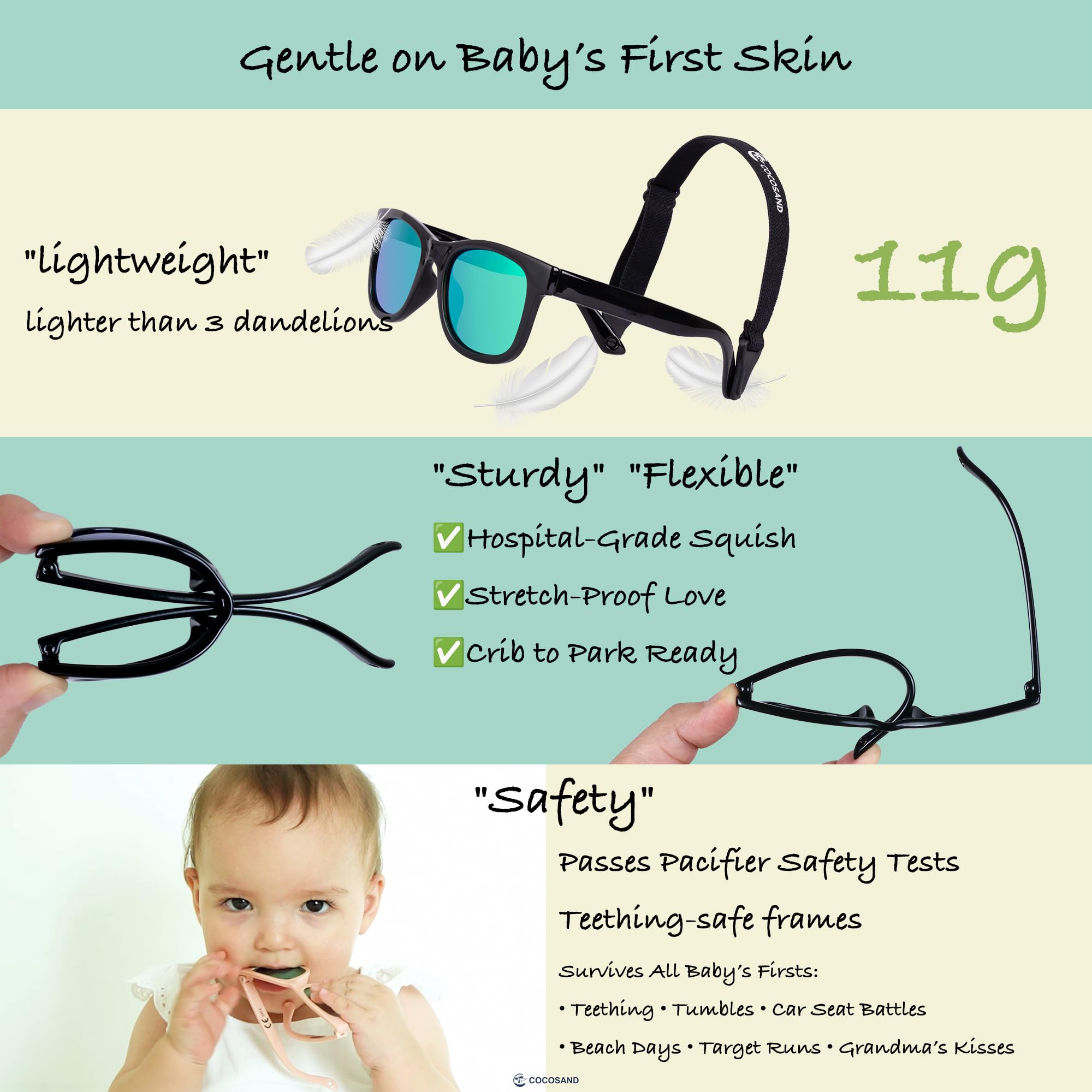 【Safety First for Your Baby】:COCOSAND baby sunglasses are a game - changer for 0-24 month olds. The polarized lenses protect eyes, and the TPE frame is as safe as can be. It's gentle on baby boys' and baby girls' skin, just like a soft hug. Whether they're infants or toddlers, it's a worry - free choice