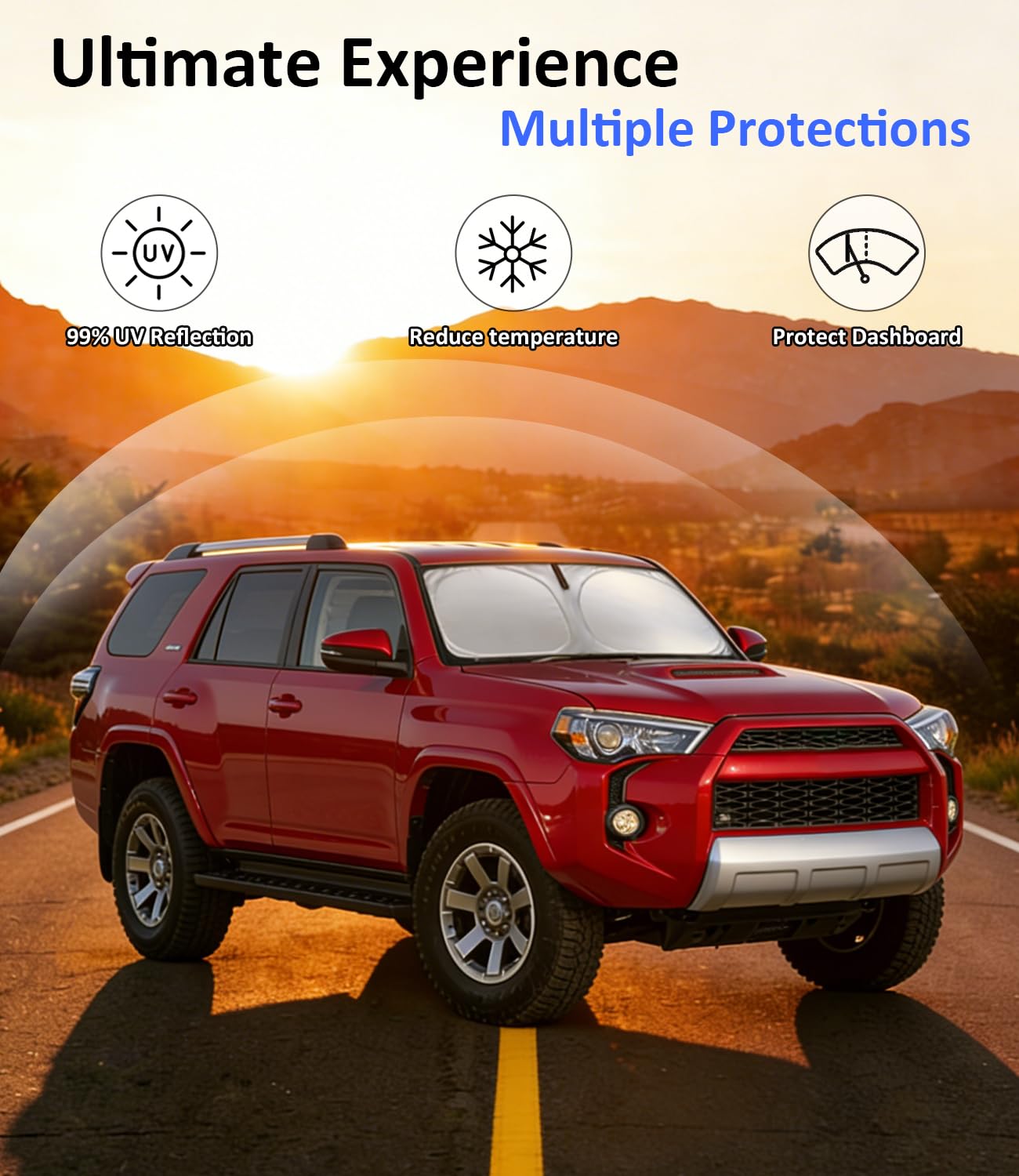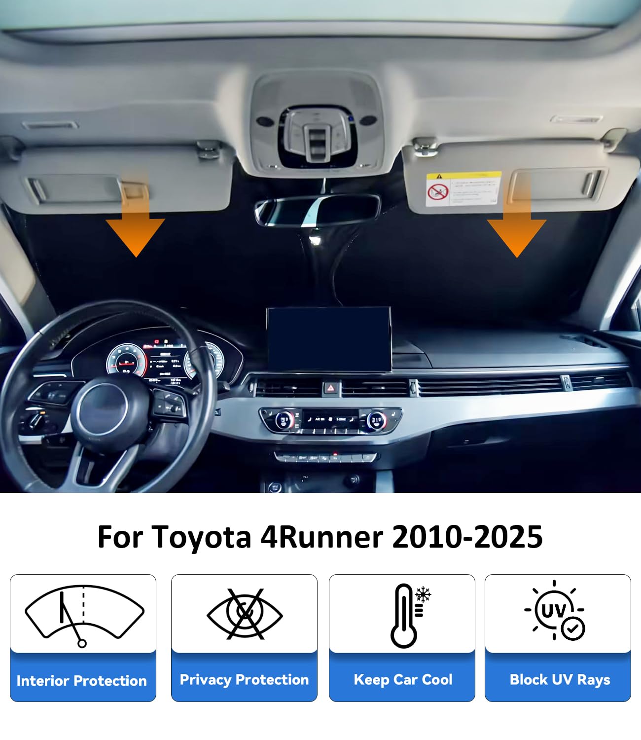 [Custom Precision Fit for Your Toyota 4Runner] Engineered specifically for the Toyota 4Runner (2010‑2025 models), this sun shade installs effortlessly. It hugs your windshield perfectly with no suction cups needed, and resists sagging or collapsing—making it ideal for both daily use and outdoor camping.