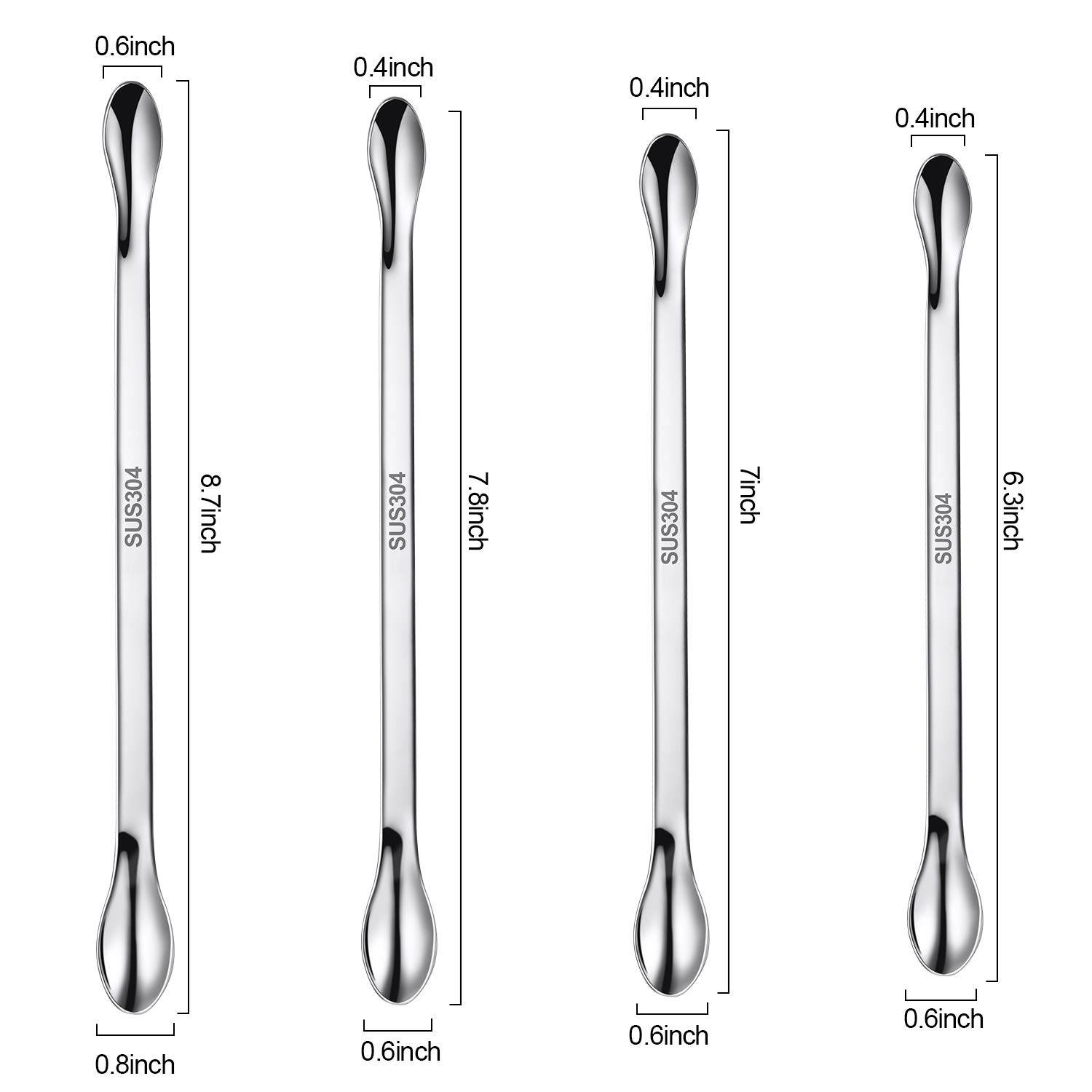 Double-sides design: these square head spatula with a flat or spoon end are mainly for transferring or handling materials, while the pointed head spoon with a scoop or spoon end are convenient to mix ingredients together in deep container