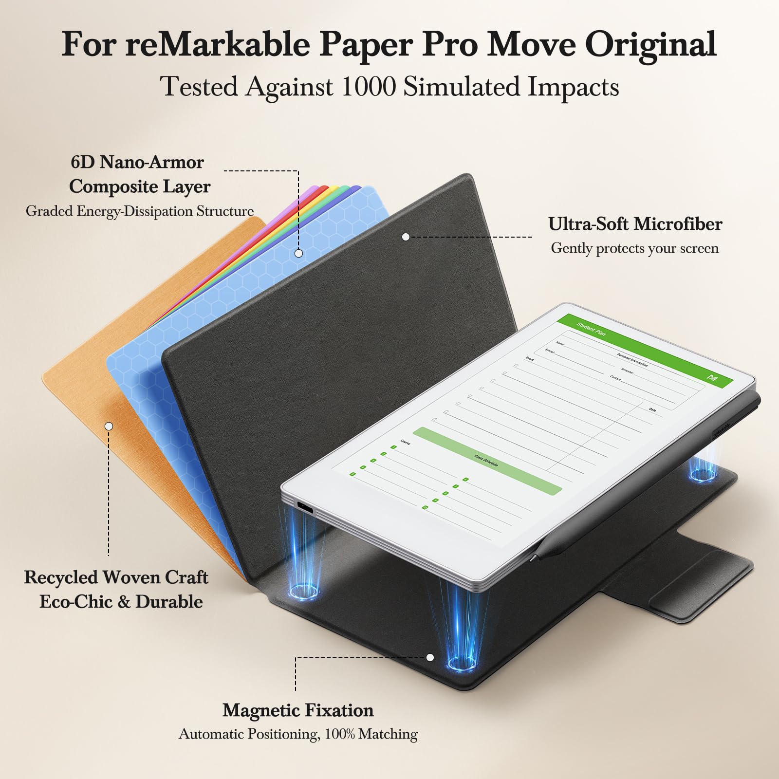 【Precision-Engineered for Remarkable Paper Pro Move Original】: Crafted with meticulous attention to detail, this case is born for the Remarkable Paper Pro Move. It achieves a 100% gap-free fit with precisely aligned ports. The integrated magnetic system features perfectly balanced magnetism, ensuring a secure, "shake-proof" hold that remains effortless to open and close.