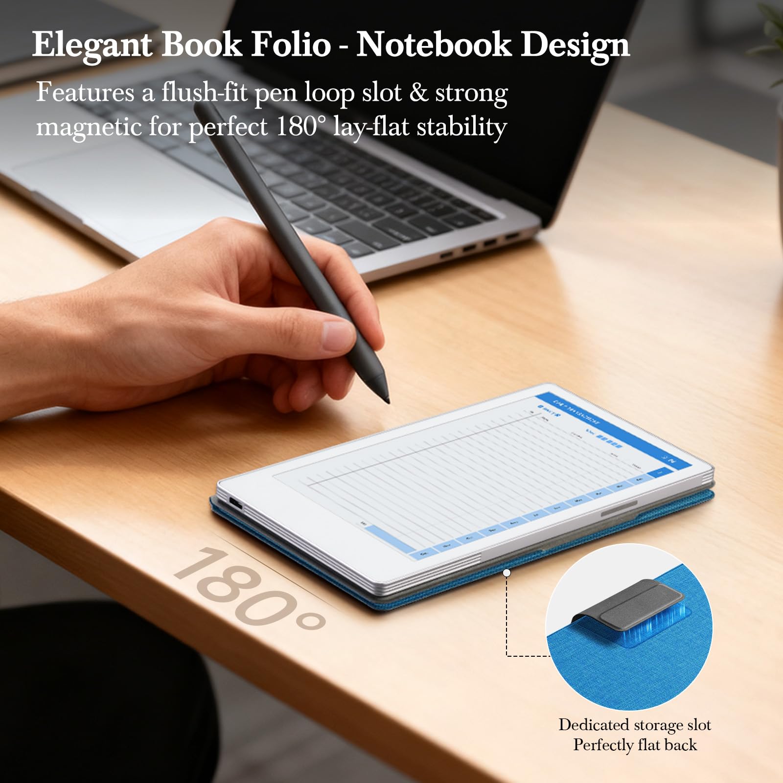【Professional Folio Design with 180° Lay-Flat Viewing】: This sleek folio cover mimics a elegant notebook. Its reinforced back housing features a strong magnetic clasp allowing the case to fold open completely flat (180°). This provides a 35% wider viewing angle for comfortable face-to-face sharing without awkward screen tilting, elevating your professional presence.