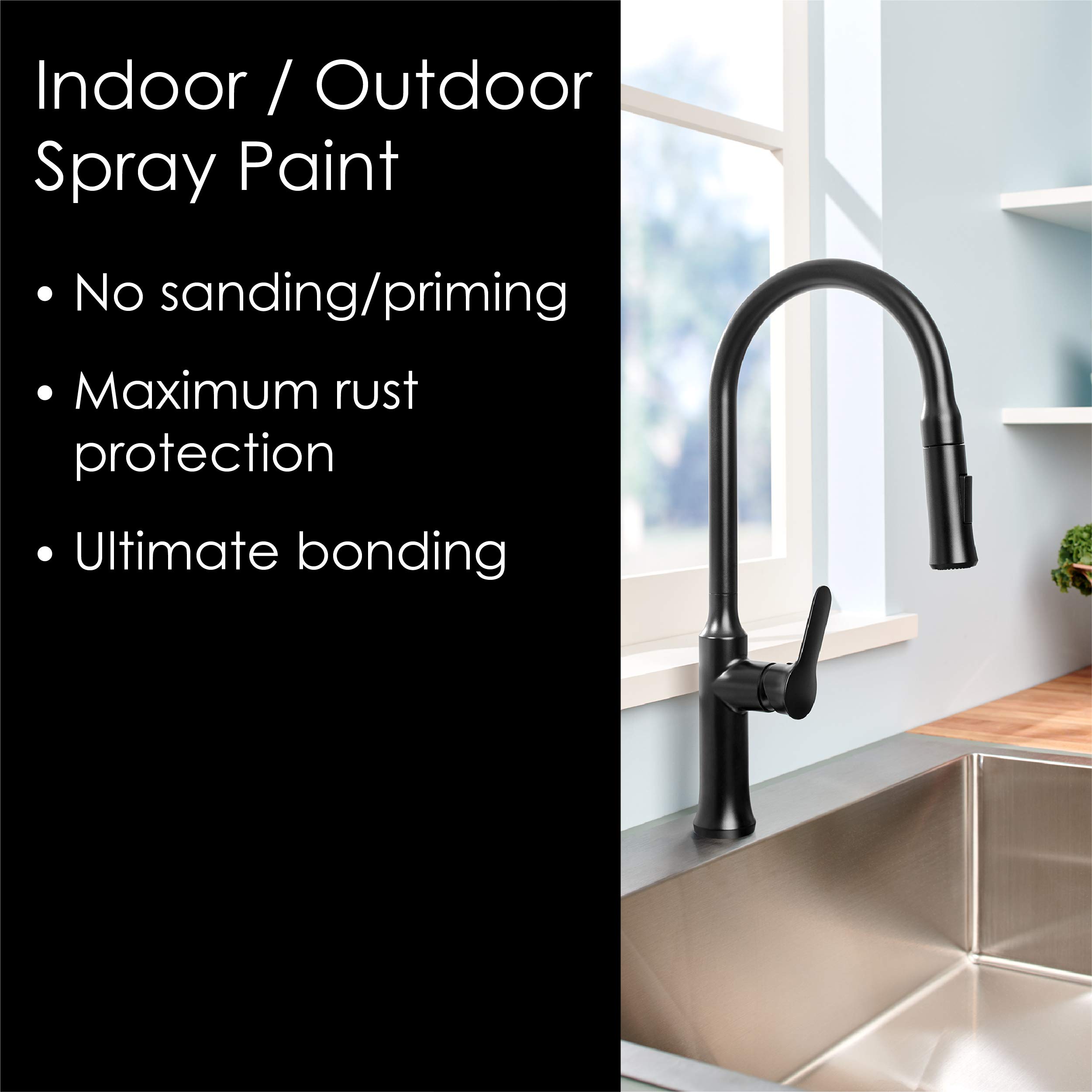 ALL-IN-ONE SPRAY PAINT-Krylon black spray paint delivers best in class adhesion, durability and rust protection. This all purpose spray paint bonds to difficult surfaces without sanding or priming, including plastic, wood, metal, PVC, tile and more.
