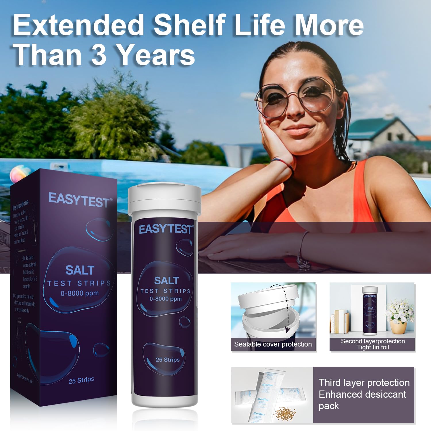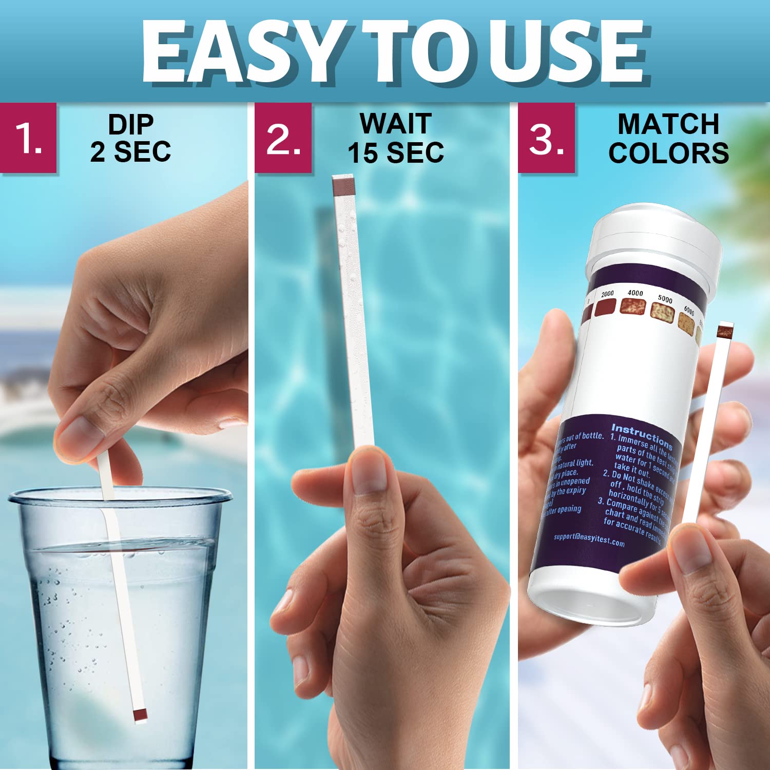 SPECIALLY FOR SALTWATER POOL: Each salt pool test strips is made of high quality PET paper that provides instant and reliable results. No need to shake the strip after dipping into water, just wait 5 seconds and faster to get results for your saltwater pool,also swimming pool and hot tub.