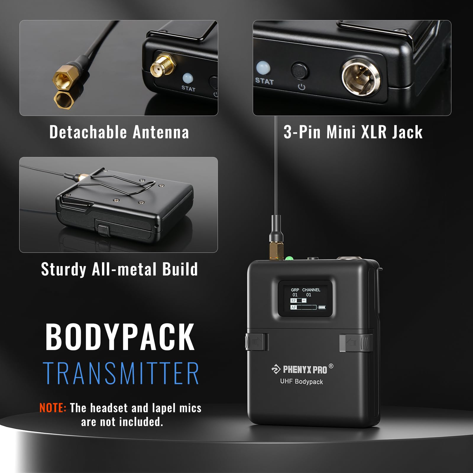 COMPATIBILITY: Can use with lapel microphone and headset microphone with a 3 pin mini XLR connector. Compatible with Phenyx Pro PTU-1U and PTU-2U true diversity wireless microphone systems