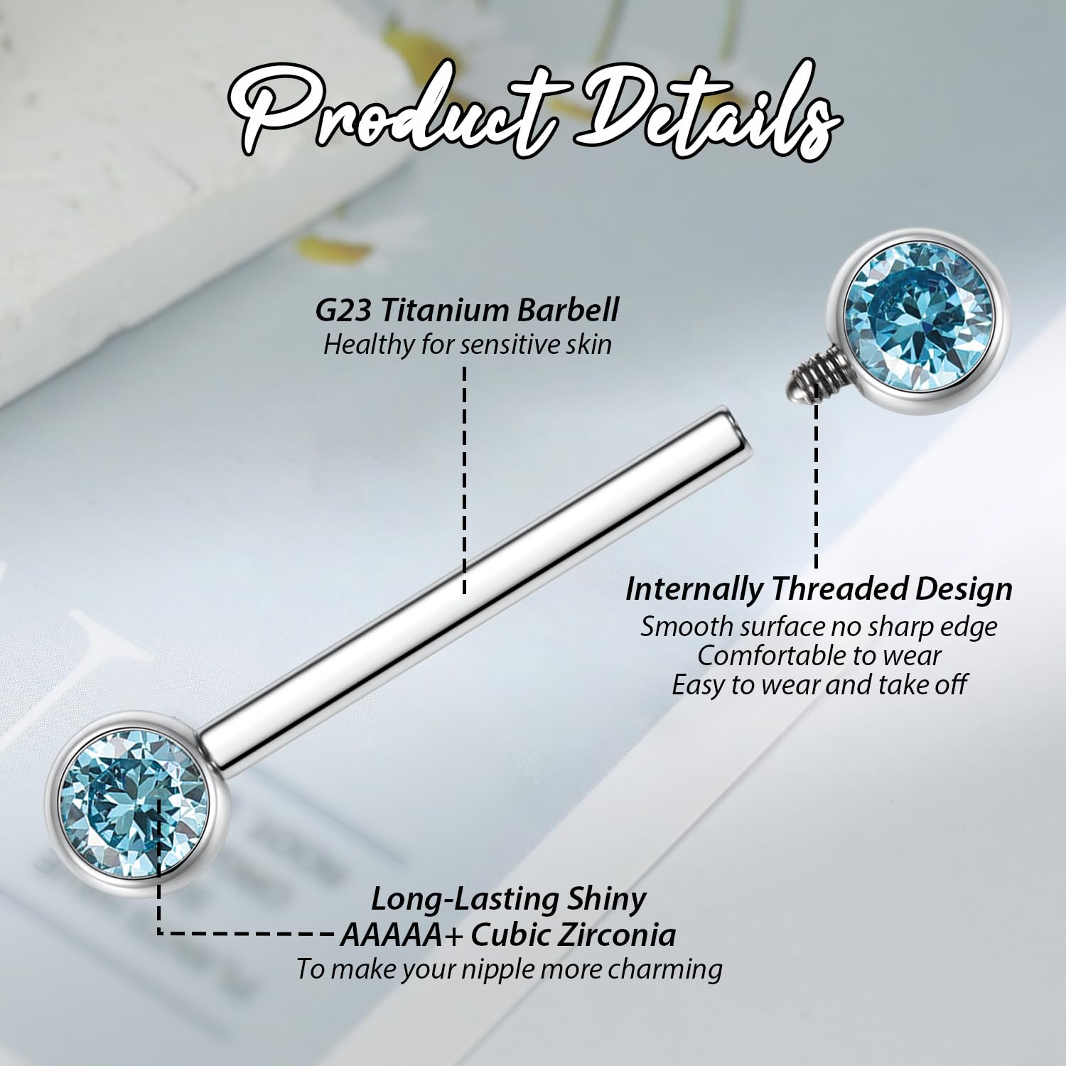 Attractive Style: The nipple ring with shiny round CZ on both side,what's more both side can be internally threaded ,make your piercing more attractive