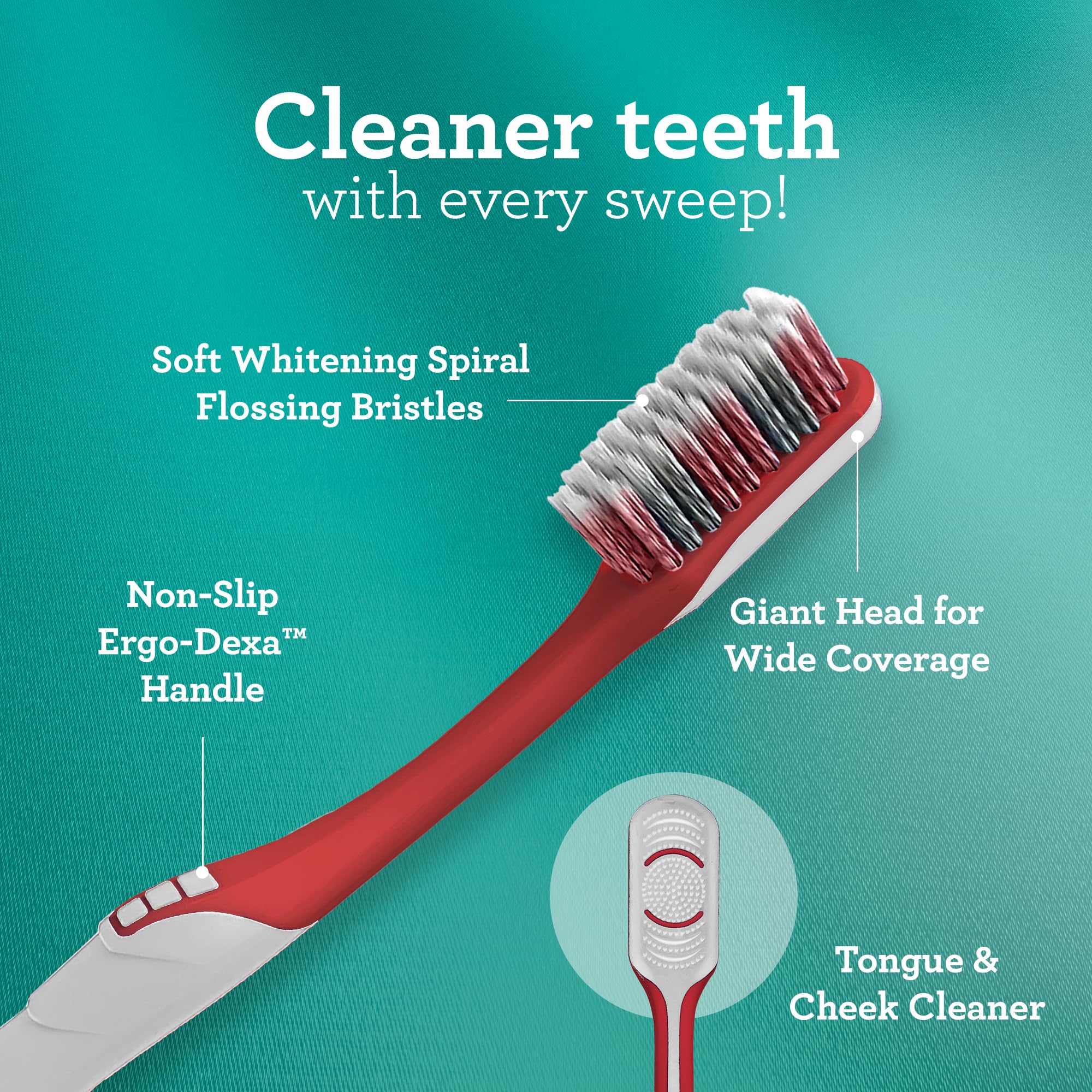 DEEP CLEAN WITH FLOSSING SPIRAL BRISTLES: Our soft toothbrush features tapered bristles that aid in easy stain removal from the surface of your teeth while helping protect your enamel & gums.