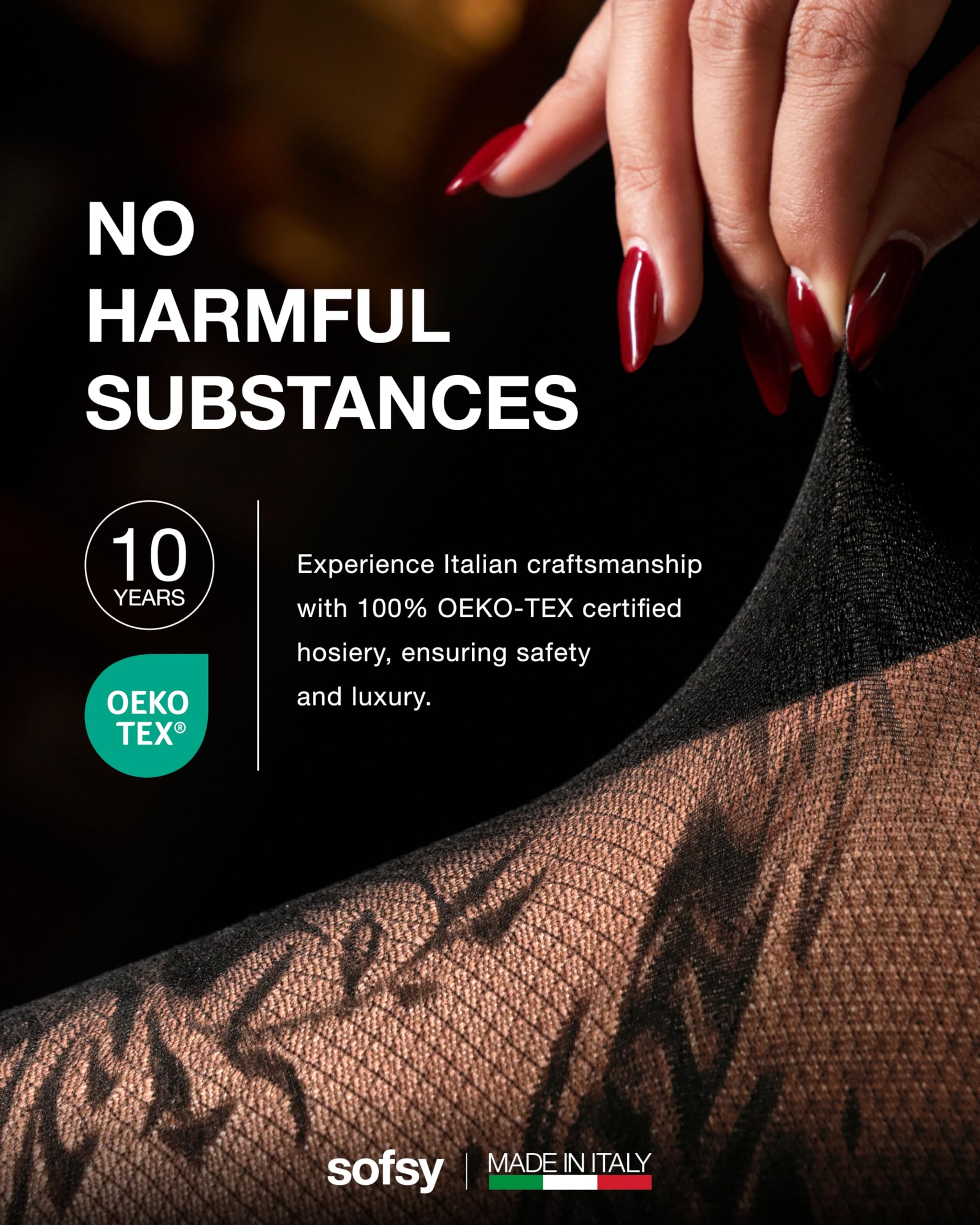 From Office to Occasion: Wear black tights with designs to elevate business attire, lace stockings for women for glamorous evenings, or sheer tights to complete your party look—each style delivers comfort, versatility, and Italian-made quality.