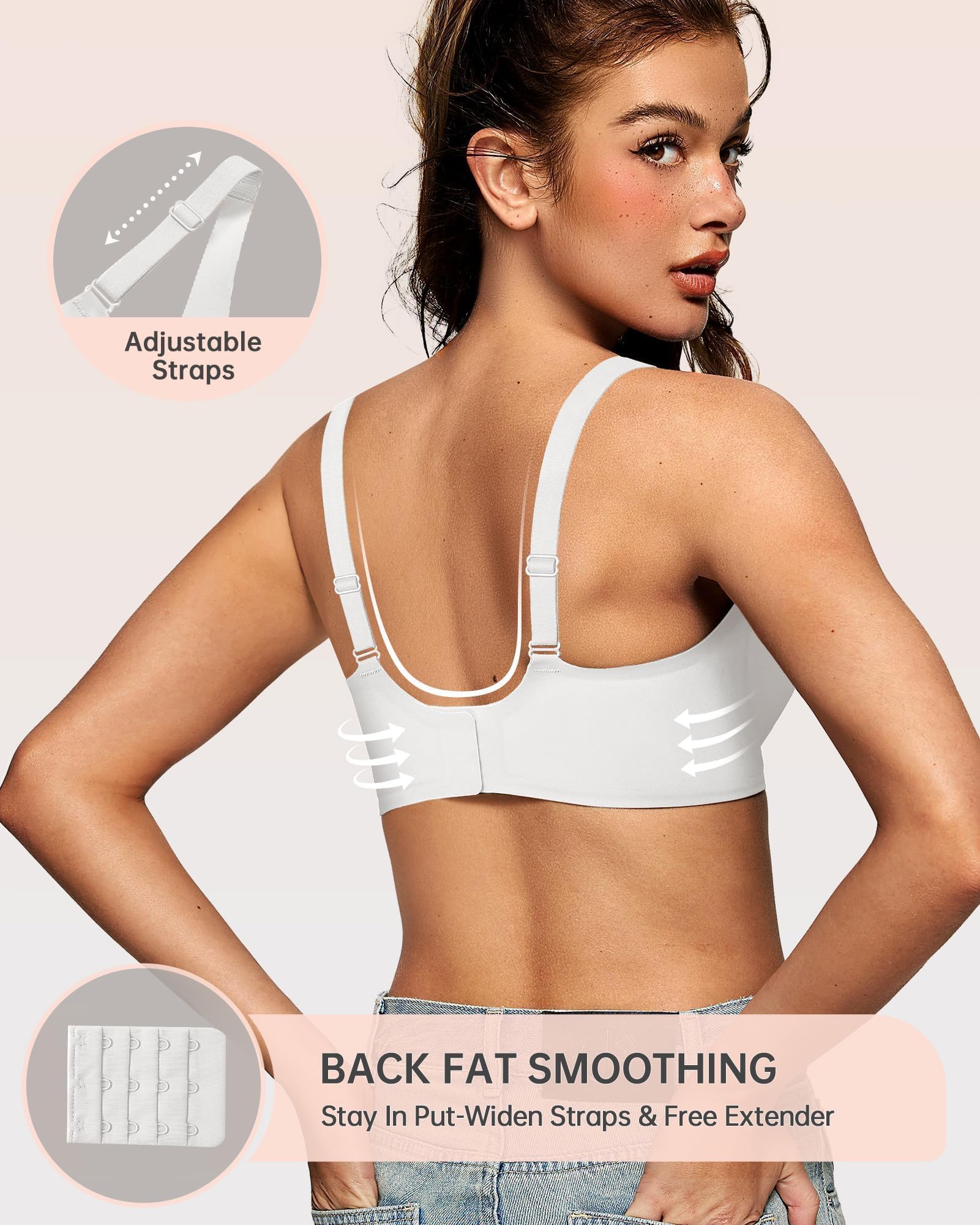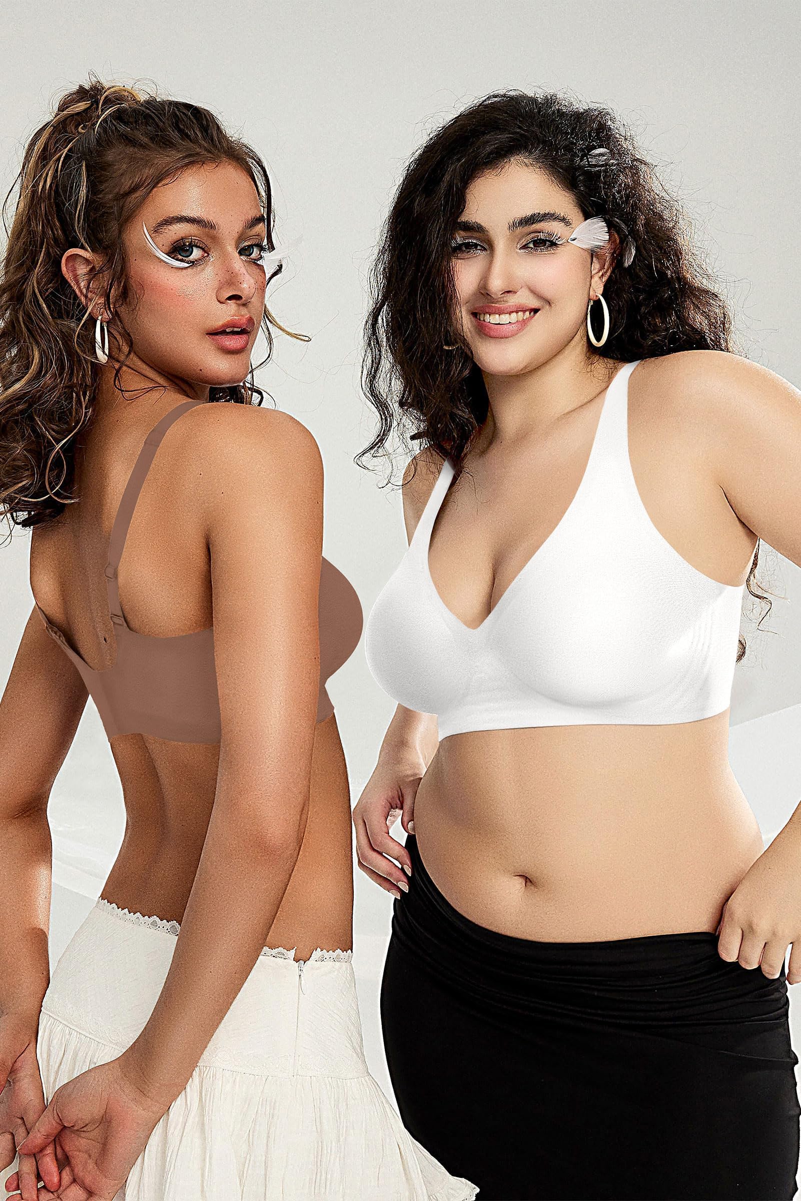 Full Support Bras - These no-wire bras feature a "W-shaped" and innovative 3D supportive technology formed by liquid jelly band, providing full support for your breasts and creating a full, natural-looking chest without the discomfort of a traditional underwire bra. The widened side of the bras with jelly band can effectively conceal excess fat.