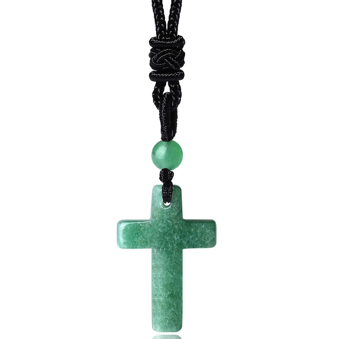 【Green Aventurine Cross Necklace for Men】Simple,fashion and Classic Design, Proper proportion of the size, Suits for religious men and women.