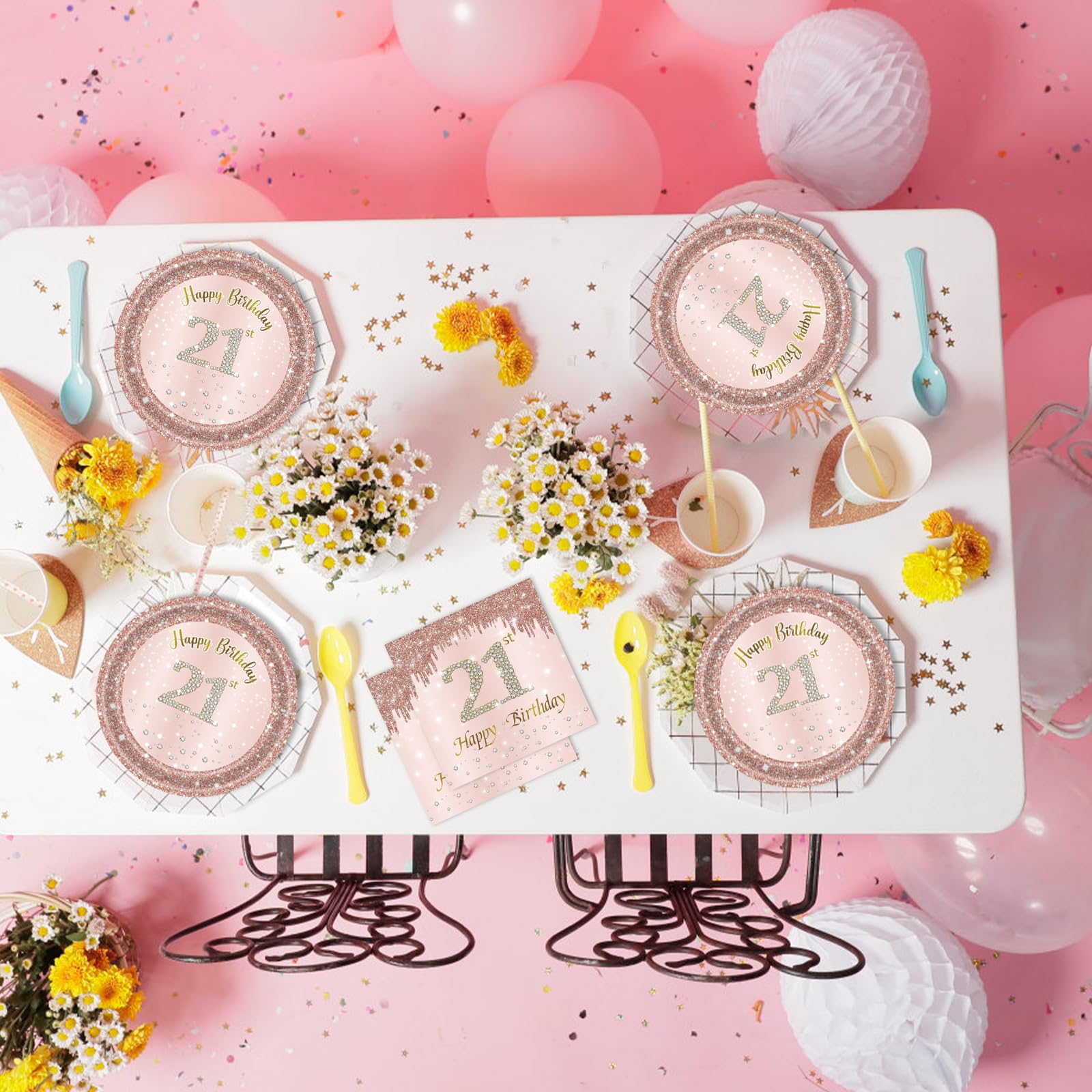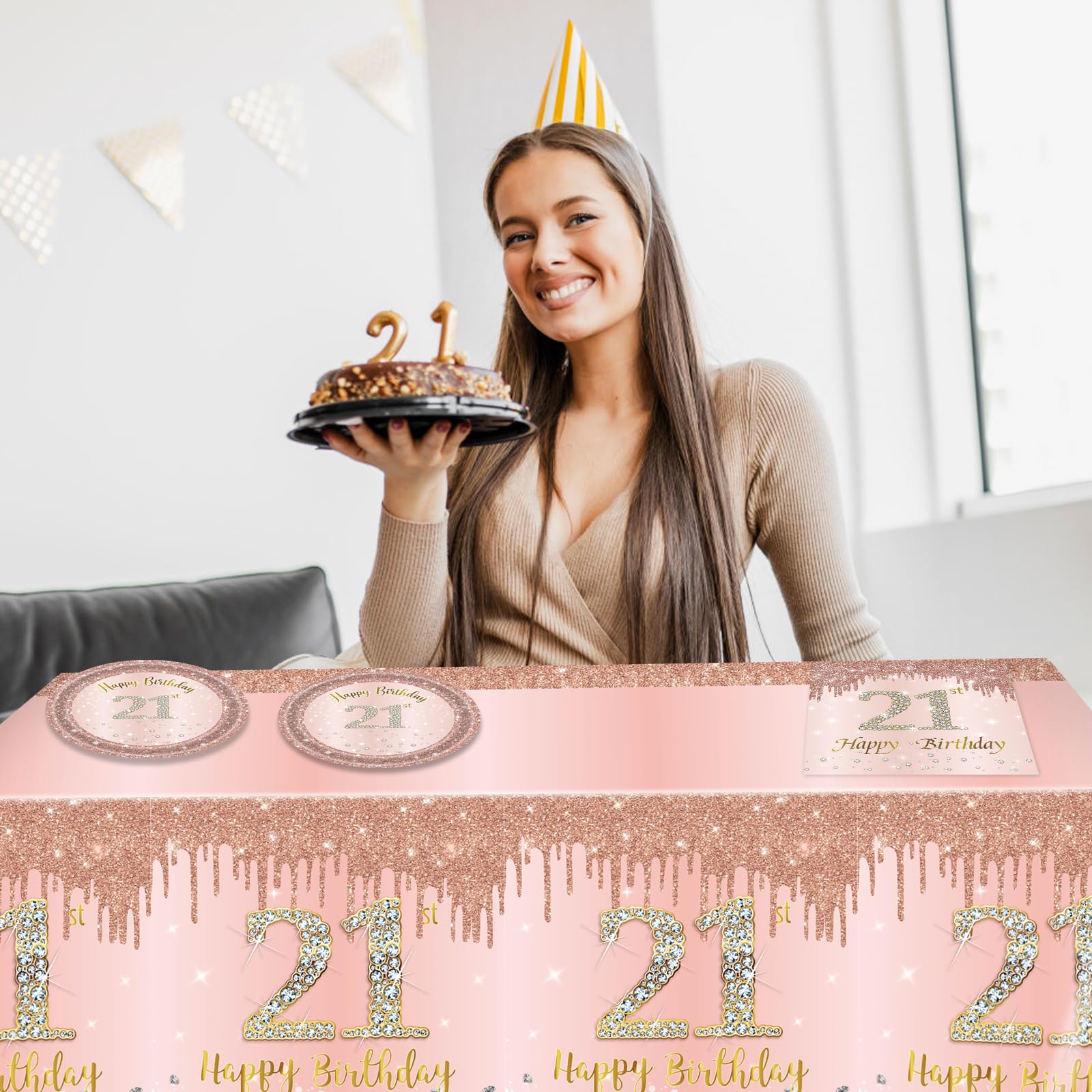 【Widely Use】The rose gold birthday plates, napkins and tablecloth sets are elegant and beautiful, decoration as party backdrop or photo props, pool party, men and women anniversary. The gift for women and girls, family, friends, or yourself. This gorgeous rose gold 21st birthday gifts for girls will make a special and memorable party that you and your guests will never forget