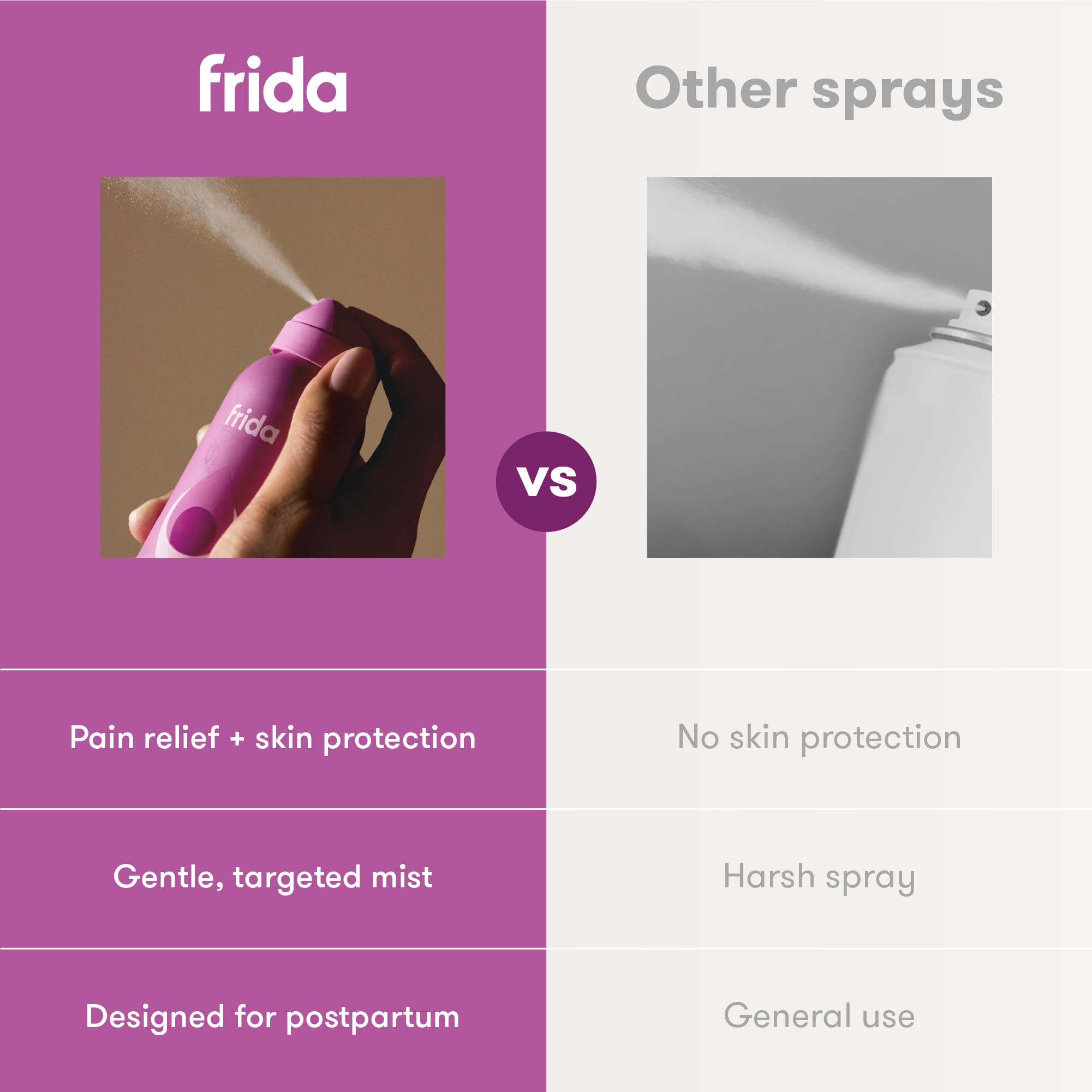 Frida Mom Anesthetic Spray is expertly formulated with hospital-strength benzocaine and glycerin to deliver instant pain relief and a protective barrier for sensitive skin. Perfect for postpartum women seeking immediate comfort after childbirth, this spray is gentle enough for the area and ideal for targeted, soothing relief. Infused with calming aloe and witch hazel—without parabens, phthalates, or fragrances—this dermatologist-tested formula supports skin recovery and comfort. The unique upside-down spray design ensures easy, hygienic, and no-touch application, reaching exactly where it’s needed. Simply spray the affected area for fast-acting comfort and ongoing protection during your healing process.
