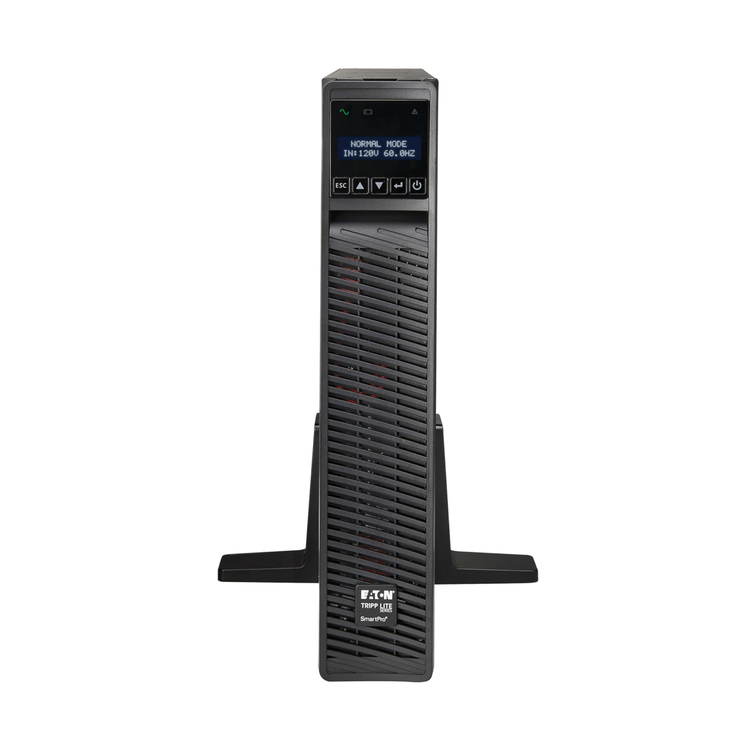 1.95KVA/1.95KW/120V BATTERY BACKUP FOR DISTRIBUTED IT, TELECOM OR ENTERPRISE DEPLOYMENTS: This rack-mount line-interactive UPS system provides reliable battery backup and AC power protection against blackouts, brownouts, surges and line noise that can damage your valuable IT equipment or destroy data. The SMART2200RMXLN is ideal power management for high-end in-rack networking equipment, including servers, VoIP phones, data storage and PoE switches. Unity power factor ensures the most watts possible at each power rating, so you can connect more equipment. RELIABLE, EXPANDABLE BATTERY BACKUP KEEPS YOU OPERATIONAL THROUGH POWER OUTAGES: The field-replaceable, hot-swappable VRLA battery modules allow you to work through short power failures and give you enough time to safely save files and shut down your system in case of a prolonged blackout. Switchover from line to battery power happens within milliseconds to maintain continuous operation of connected equipment without interruption or rebooting. Extra runtime is available by connecting up to four optional extended battery modules (BP72VRM2U, sold separately). PRE-INSTALLED LX PLATFORM NETWORK MANAGEMENT CARD ALLOWS REMOTE ACCESS 24/7: The WEBCARDLXE network interface enables full remote configuration and management, including load shedding, reboots of connected equipment and safe shutdowns. The IP-based Auto Probe feature ensures continuous network uptime by communicating with other network devices, detecting lost connectivity and automatically rebooting IT equipment. Optional EnviroSense2 modules (E2MT, E2MTDO and E2MTHDI, all sold separately) provide a variety of environmental monitoring and control options. NEMA 5-20R OUTLETS PROTECT YOUR CONNECTED COMPONENTS: One L5-20R and six managed 5-20R outlets provide connected equipment with pure sine wave AC output and allow you to monitor power consumption down to the outlet group level. Power provided by these outlets is filtered to protect connected equipment against damaging surges and line noise. Four outlets are grouped into two programmable load banks that let you shed non-critical loads to extend runtime for critical loads. Front and rear cooling fans help protect equipment from overheating. AUTOMATIC VOLTAGE REGULATION (AVR) CORRECTS LOW- AND HIGH-VOLTAGE CONDITIONS: AVR protects your equipment from incremental hardware damage, data loss and performance problems caused by brownouts. The SMART2200RMXLN maintains regulated 120V nominal output during brownouts and overvoltages from 80V to 151V while keeping the battery fully charged and ready to take over in case of power failure. PREMIUM PROTECTION FROM EMI/RFI LINE NOISE HELPS YOUR EQUIPMENT PERFORM BETTER: This UPS system filters out disruptive electromagnetic and radio frequency interference that can inflict hardware damage or data loss. This EMI/RFI filtering also helps your connected components perform better and last longer. ENERGY STAR-CERTIFIED TO HELP YOU SAVE MONEY AND PROTECT THE ENVIRONMENT: By meeting strict U.S. Department of Energy and U.S. Environmental Protection Agency requirements, this ENERGY STAR 2.0 UPS system provides high operational efficiency to signal a reduction in BTU emissions, save on utility and cooling costs and help protect the environment. INTUITIVE FRONT-PANEL INTERFACE FOR CONVENIENT UPS OPERATION AND MONITORING: The two-line front-panel LCD monitoring screen features 10 selectable screens that allow quick access to a wide range of detailed UPS and site power information. LEDs show UPS status: a green light means utility power is on, an orange light means the UPS is in battery mode and a red light indicates an active alarm or fault. The control panel rotates to accommodate both rack-mount and tower configurations. ADVANCED COMMUNICATIONS PORTS ALLOW FOR AUTOMATIC SAVES AND SHUTDOWNS: RS-232 and USB ports connect to a device for a variety of communication options (cables are included). A dry-contact relay port can be programmed through the LCD to provide reliable communications to automation and industrial components. The RPO/ROO port permits emergency shutdown or remote restart of all connected equipment. VERSATILE INSTALLATION OPTIONS: You can mount the SMART2200RMXLN in just 2U of space in an EIA-standard 19-inch rack using the included hardware. You can also adapt it for tower installation using the included support stands. The 10-foot power cord with NEMA 5-20P plug connects to a compatible AC outlet.
