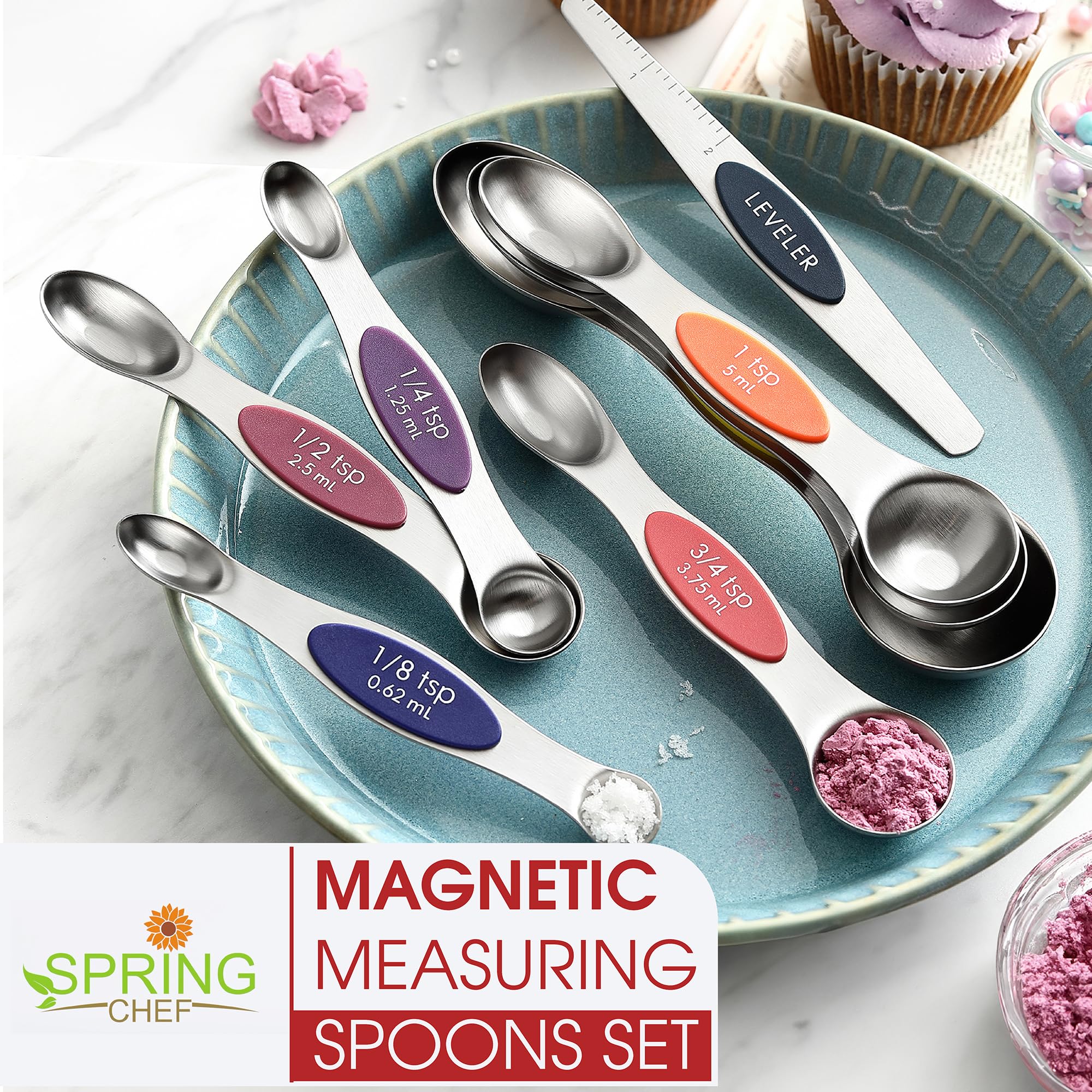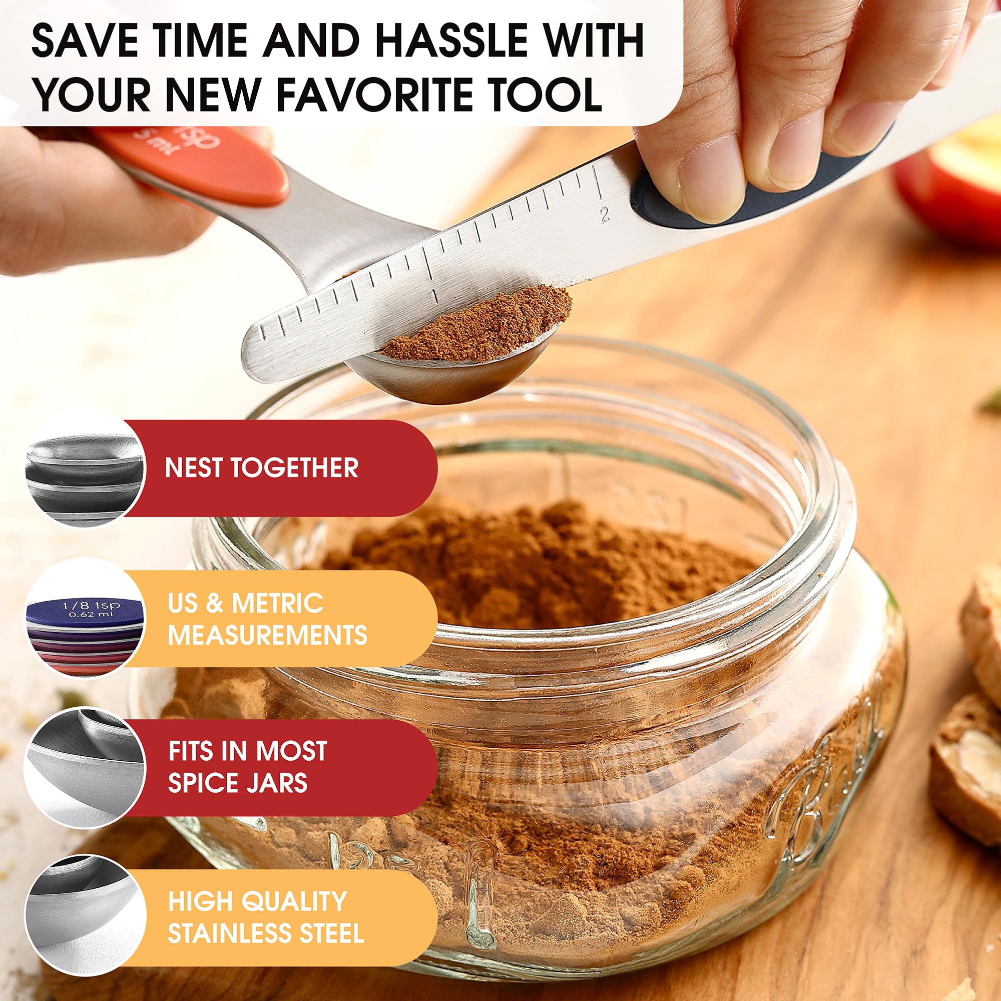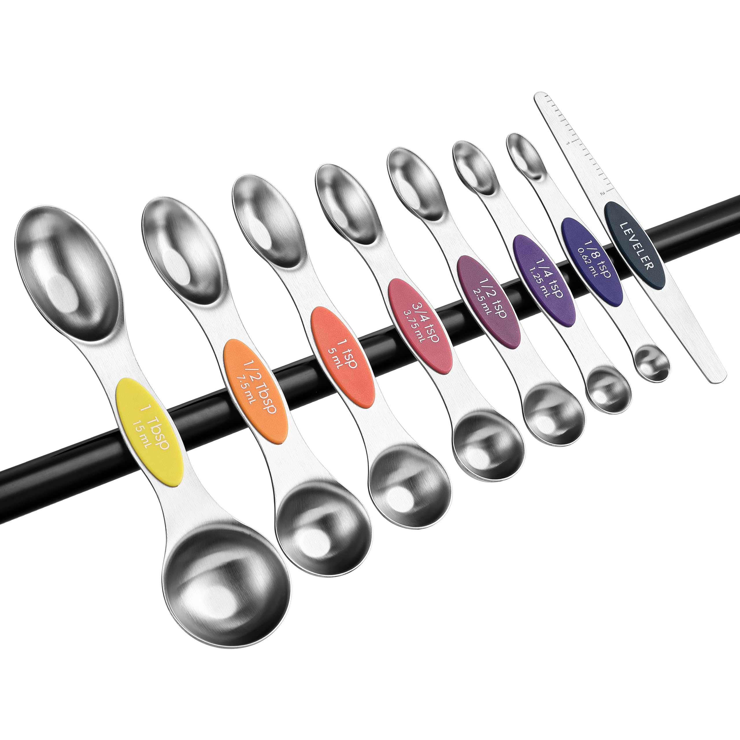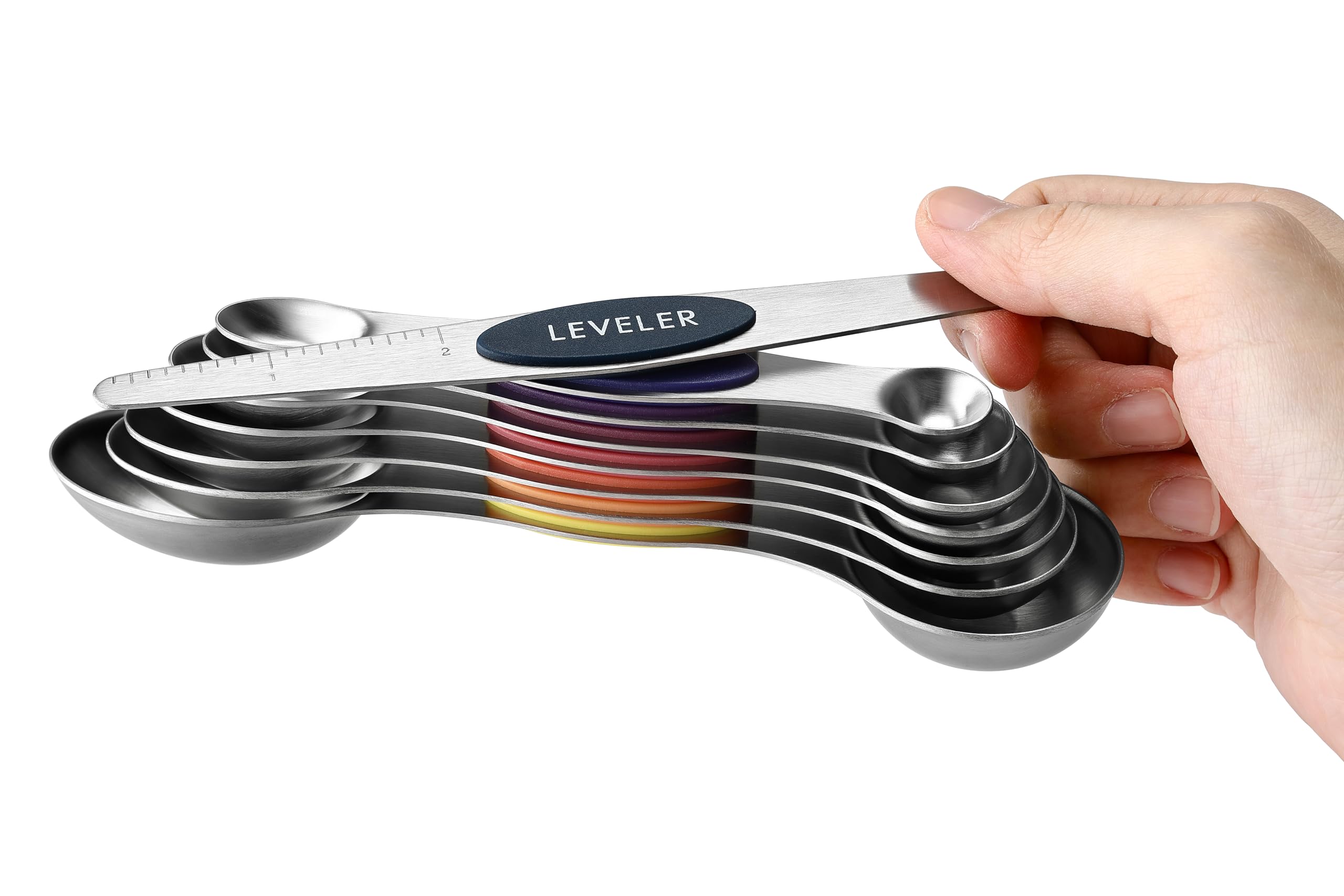 Magnetic For Easy Use And Storage - These magnetic spoons let you use one spoon at a time and then they nest together for easy storage. Quickly grab the spoon you need without having to fumble with opening and closing a ring. They even have U.S. and metric measurement markings that are easy to read and won't fade or rub off.