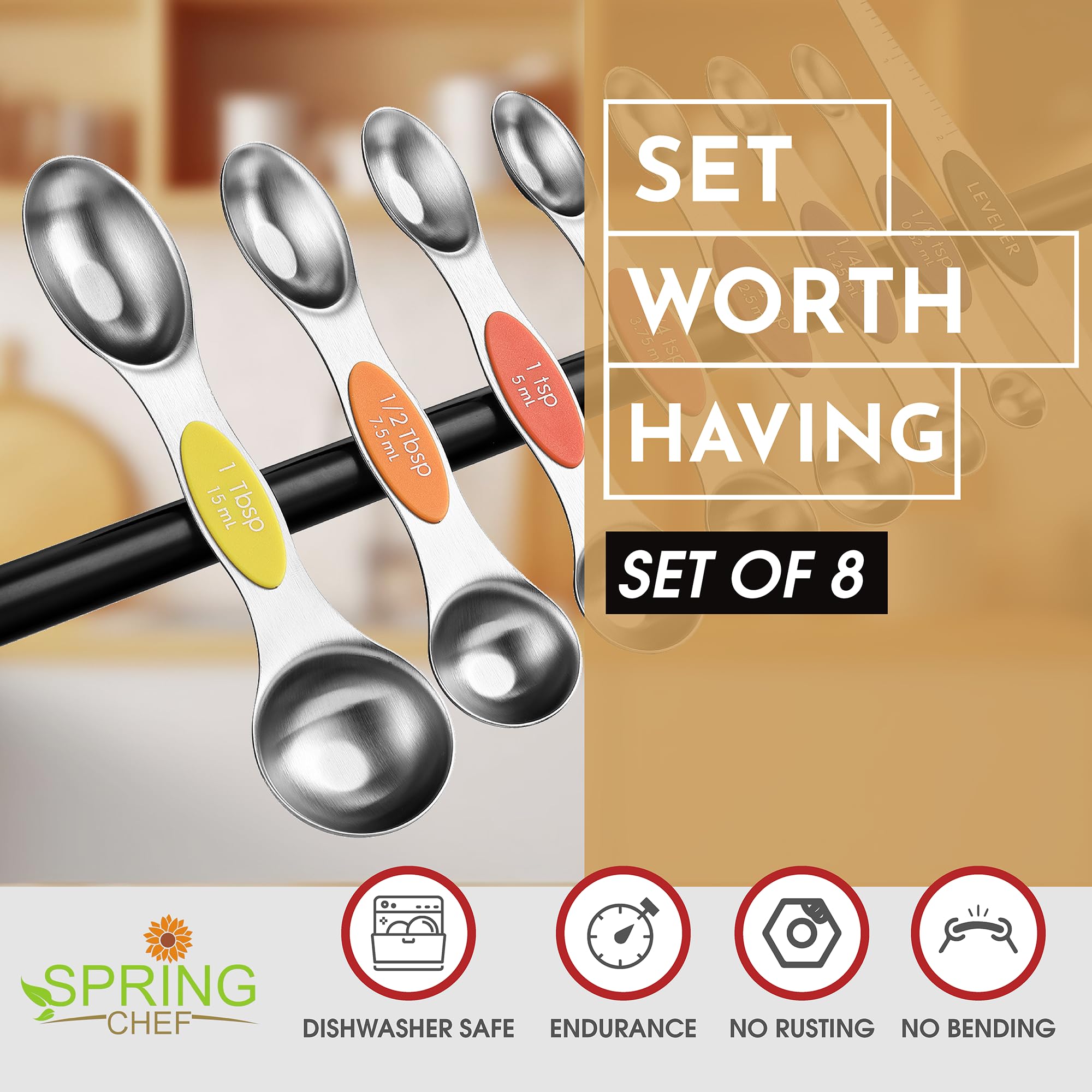 Treat Yourself To A Set Worth Having - With single metal construction and heavy duty premium Stainless Steel, these measuring spoons were built with endurance in mind. They won't rust or bend. This beautiful set performs incredibly well and was designed to last.