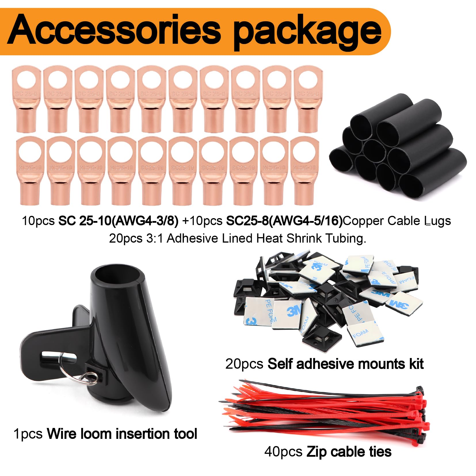 Complimentary some suitable size lug terminals and 3:1 heat shrink tubes guarantee a good user experience.No additional purchase required.
